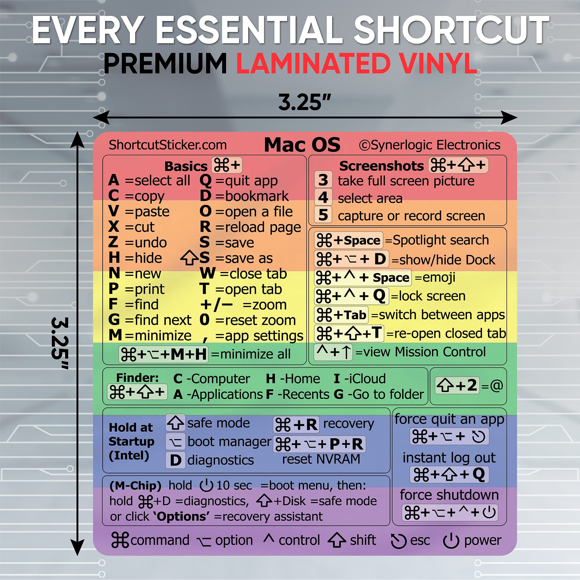 🏳️🌈 ✔️ EVERY ESSENTIAL SHORTCUT - With the SYNERLOGIC Mac OS Reference Keyboard Shortcut Sticker, you have the most important shortcuts conveniently placed right in front of you. Easily learn new shortcuts and always be able to quickly lookup commands without the need to “Google” it. ⚠️ A friendly reminder: The ⇧ symbol stands for "Shift" button.