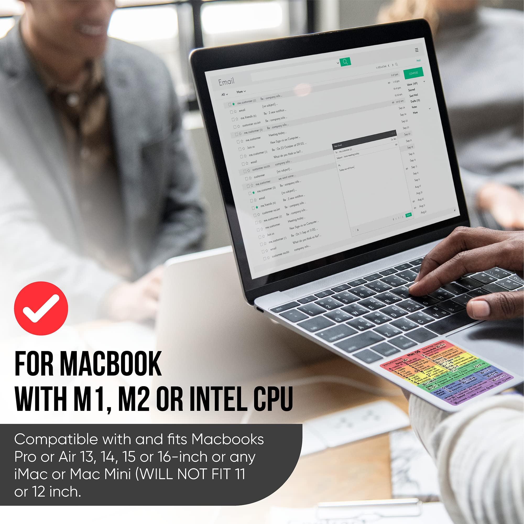 🏳️🌈✔️ FOR Macbook with M1, M2, M3, or Intel CPU - Compatible with and fits Macbooks Pro or Air 13, 14, 15 or 16-inch or any iMac or Mac Mini (WILL NOT FIT 11 or 12 inch - we have a smaller sticker for those). Shortcuts work for any MacOS 11: Sonoma, Ventura, Monterey, Big Sur, as well as any Mac OS 10: Catalina, Mojave, High Sierra, El Capitan, etc. 🇺🇸PROUDLY MADE IN USA🇺🇸