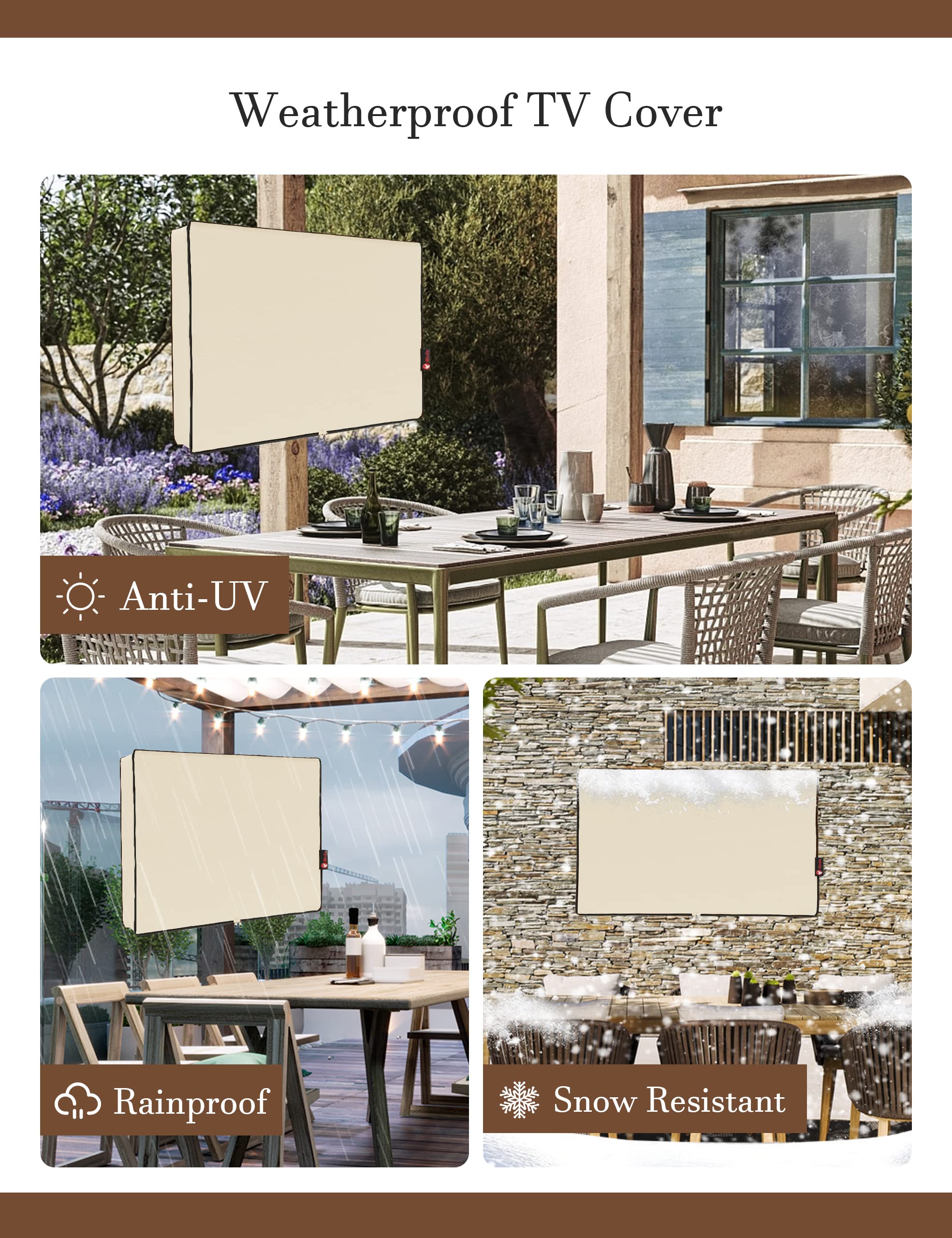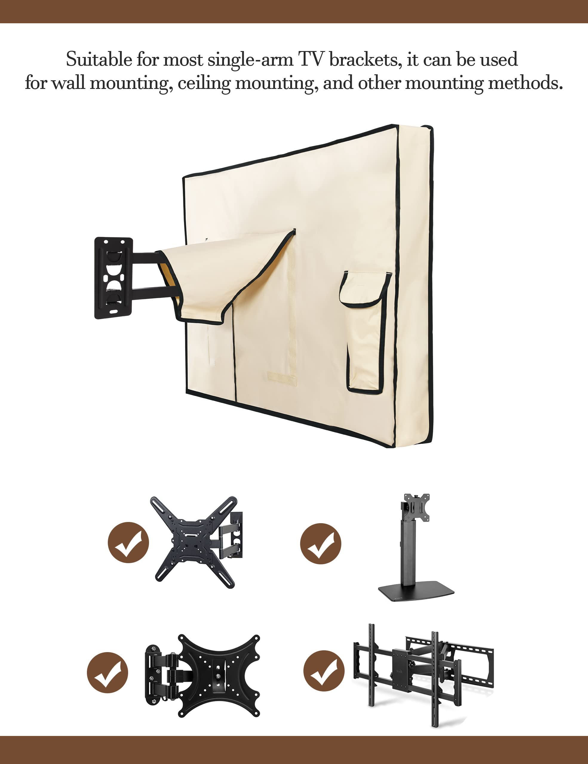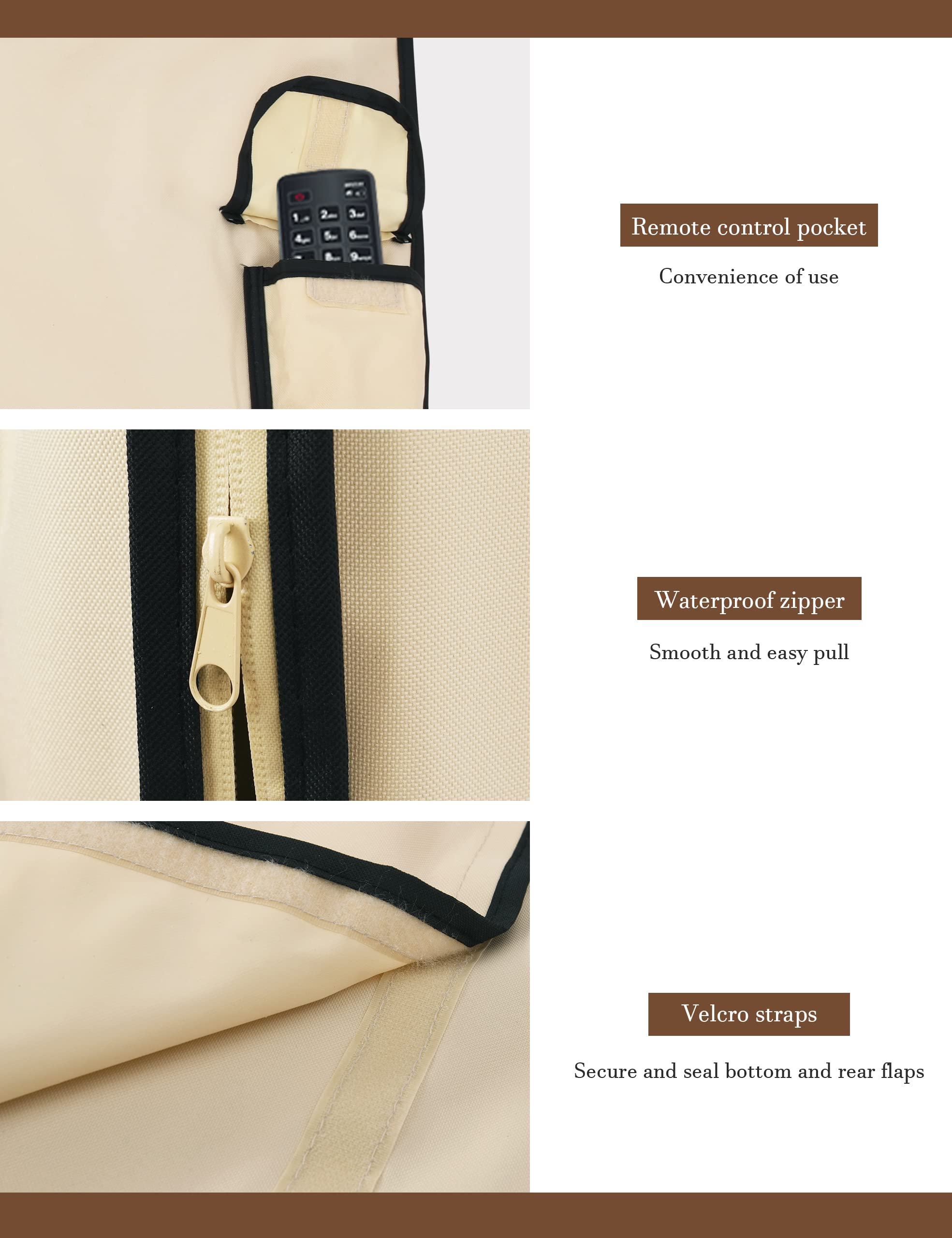 Easy to Use: The convenient waterproof zipper provides quick installation and removal, so you don't have to take off the entire cover when you want to use your TV. The pocket behind the TV cover makes it easy to store your remote control