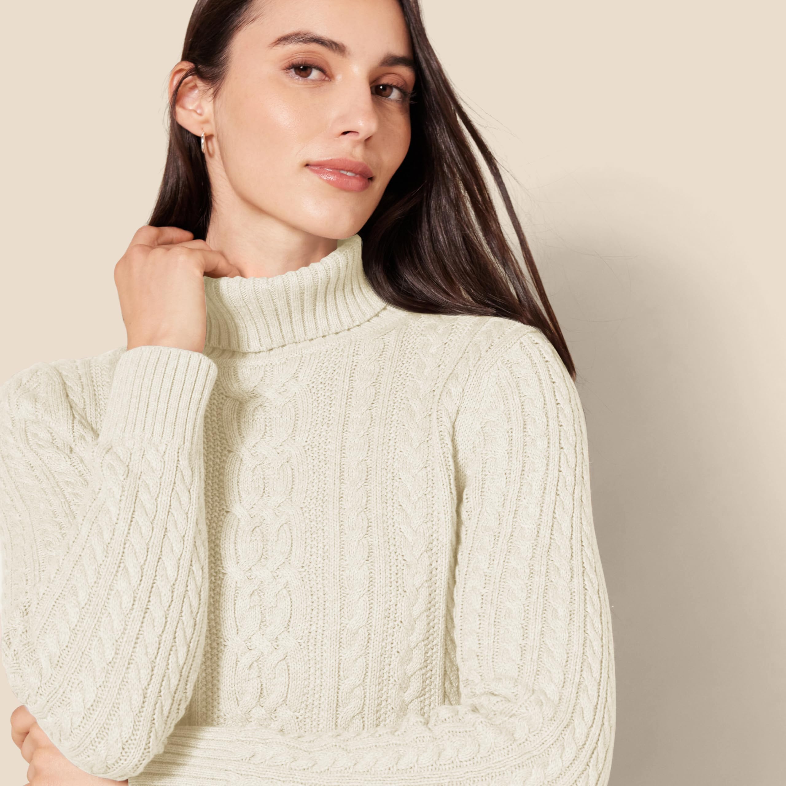 CABLE TURTLENECK SWEATER: A modern, classic cozy sweater perfect for both a refined and casual look.