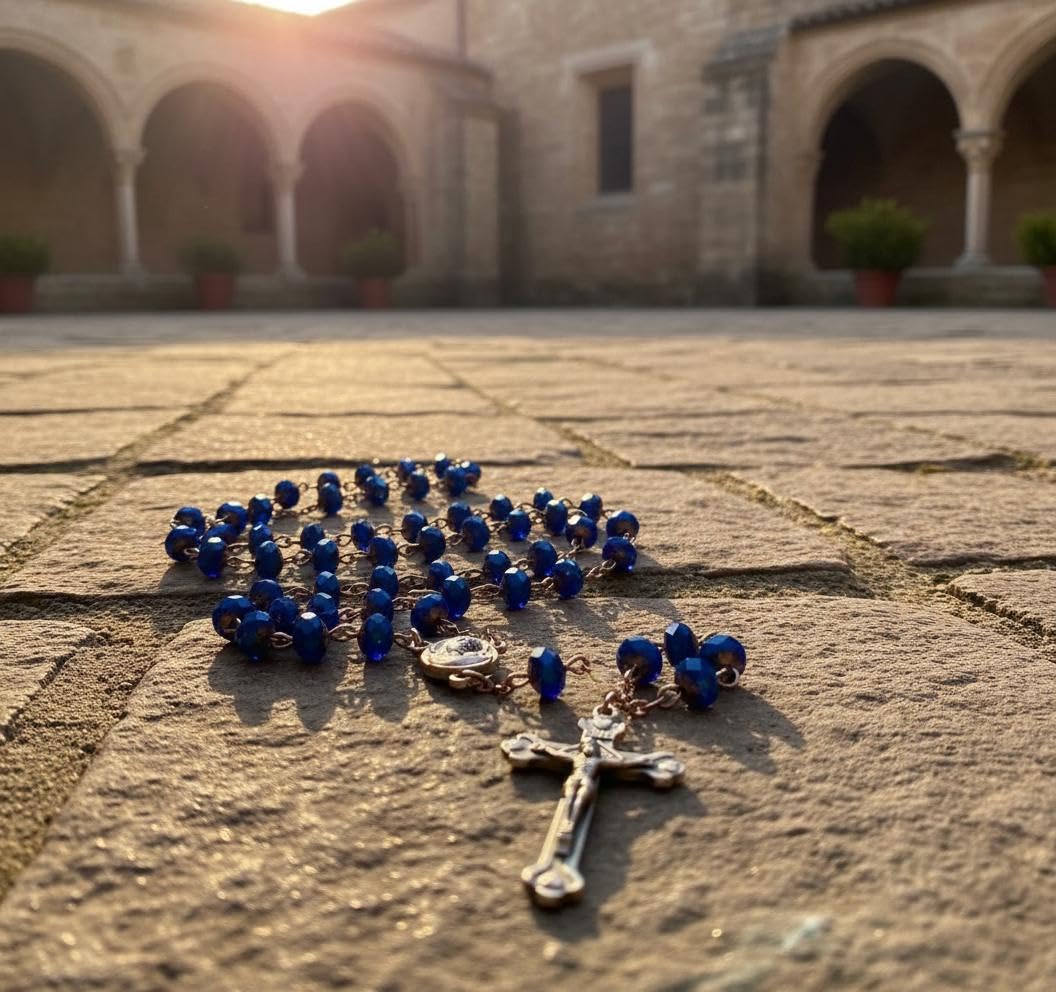 Spiritual Design with Devout Purpose – Connected with 59 deep blue devotional beads forming five decades. Perfectly suited for prayer, reflection, or as a wearable religious necklace.