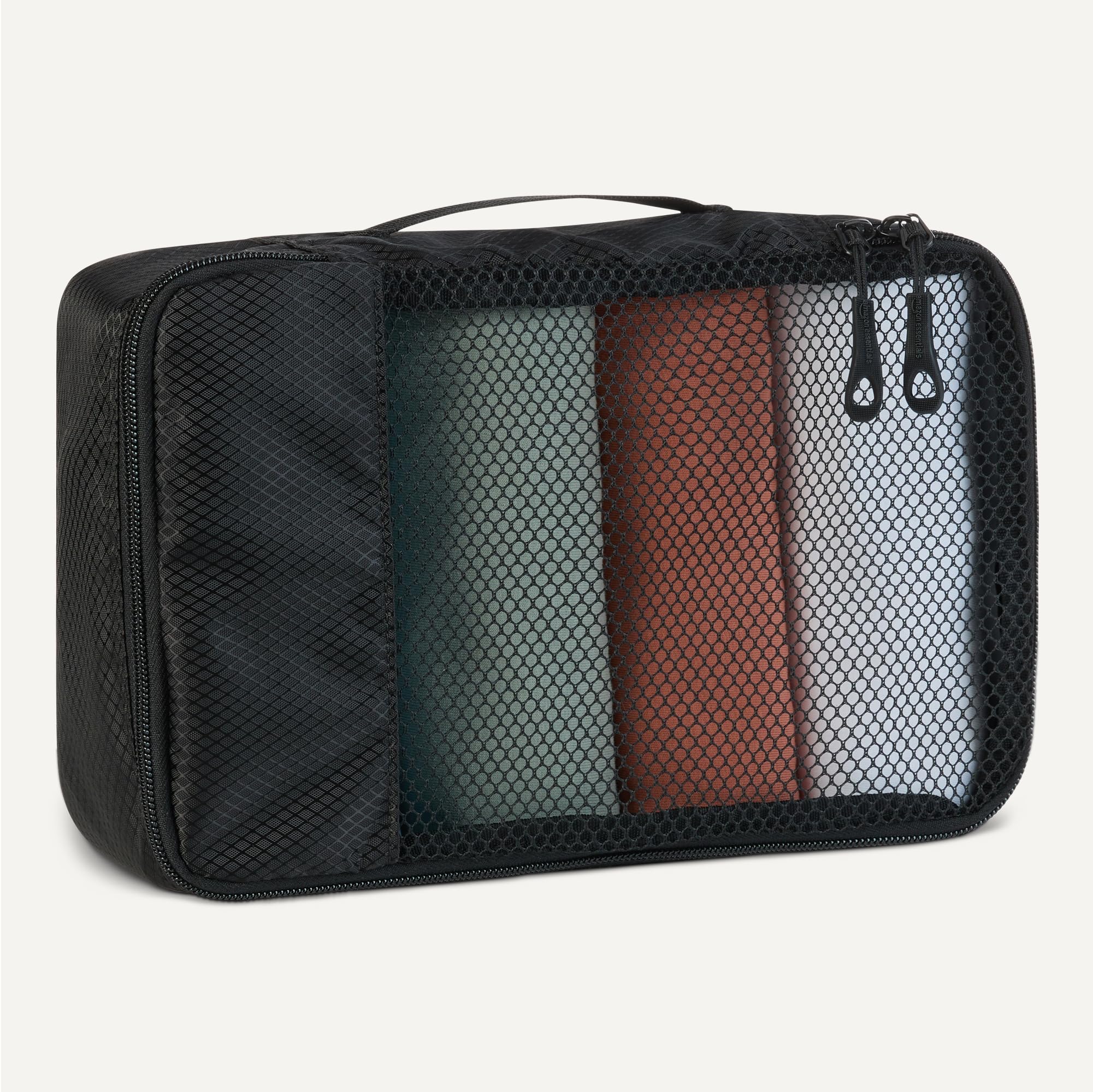THOUGHTFUL, USER-FRIENDLY DESIGN: The mesh top panel keeps contents visible, so you can easily identify and access items without opening each cube. Each cube features a convenient webbing handle for easy handling, and they're machine washable for easy care.