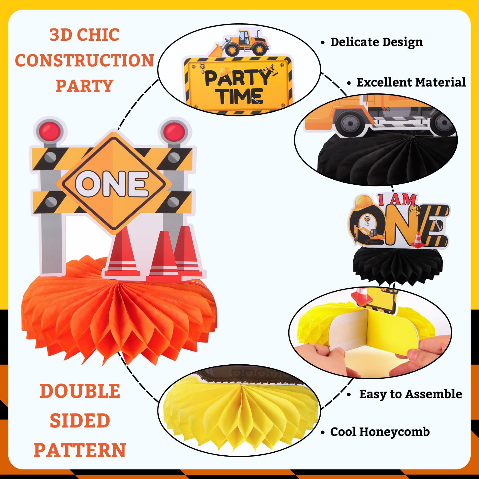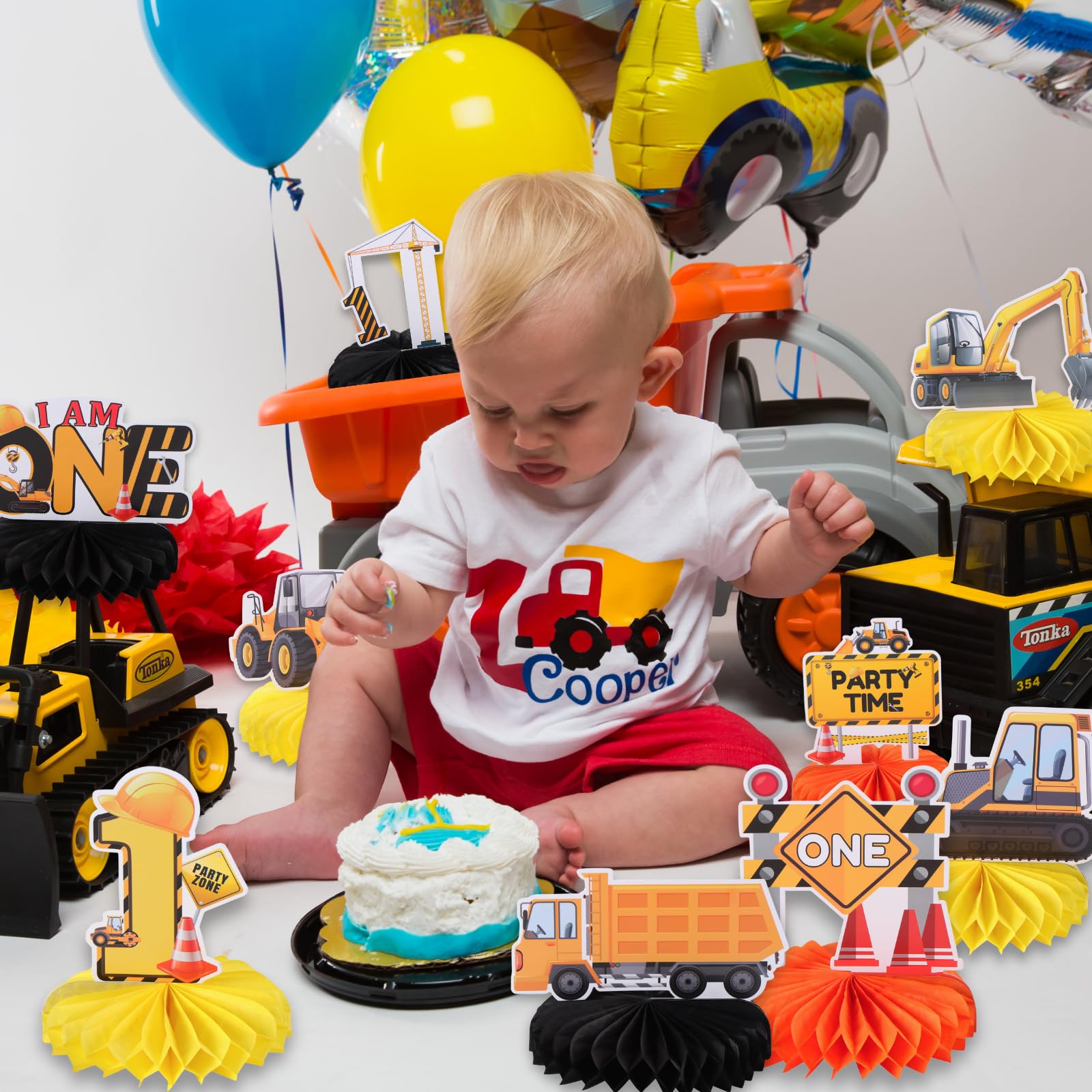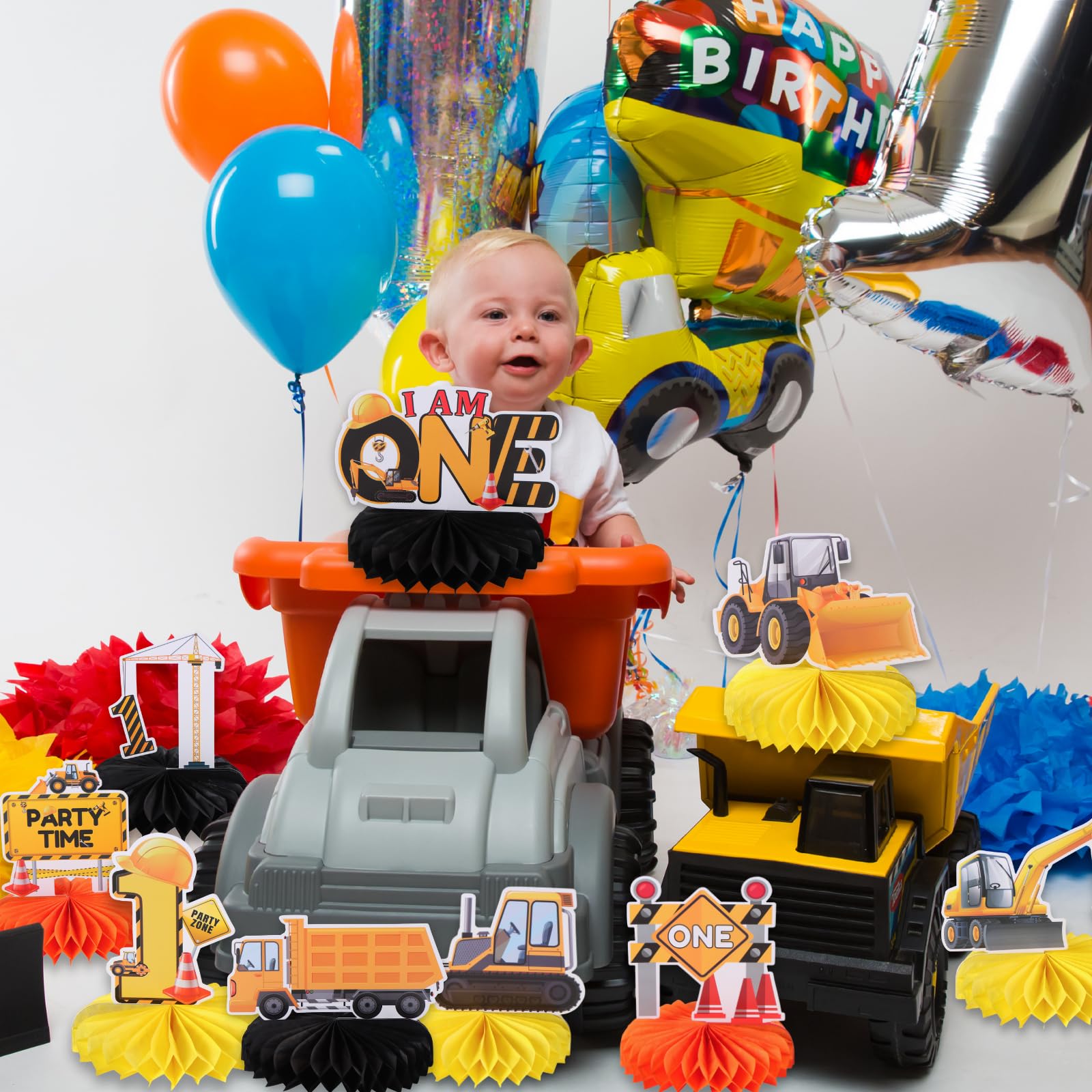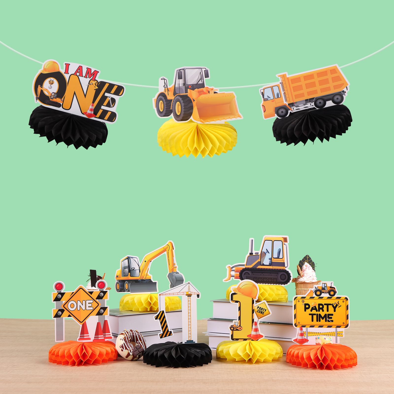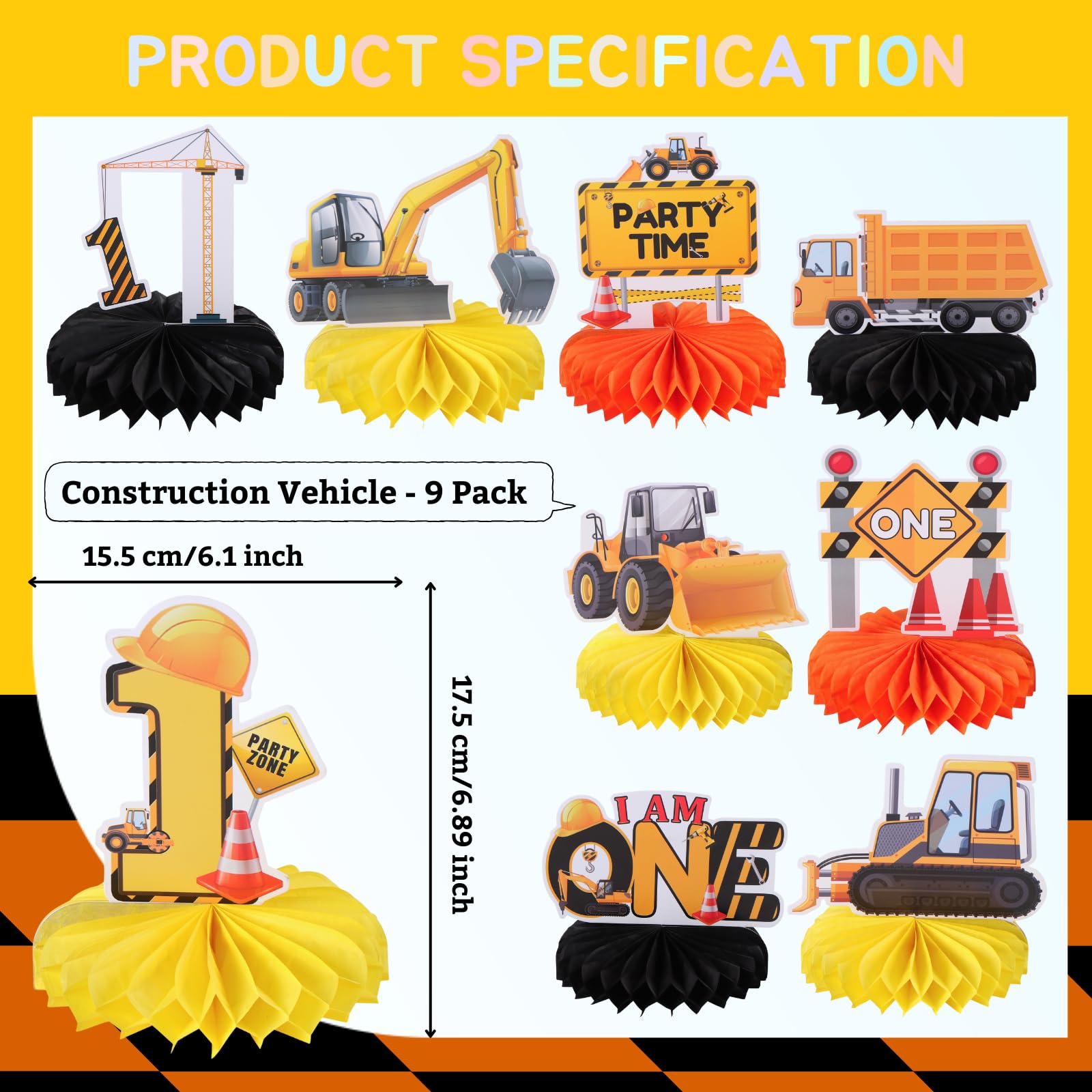 Delicate Construction Vehicle 1st Birthday Party Favors: The cool construction design adds the touch of active and sophistication to party decor, making it a standout event. Our 9pcs honeycomb centerpieces come in construction vehicle, ONE, PARTY TIME, trash car, trunk, excavator, dump truck and bulldozer patterns in a beautiful combination of varous color. It will add much touch of charm to a construction vehicle style 1st birthday party