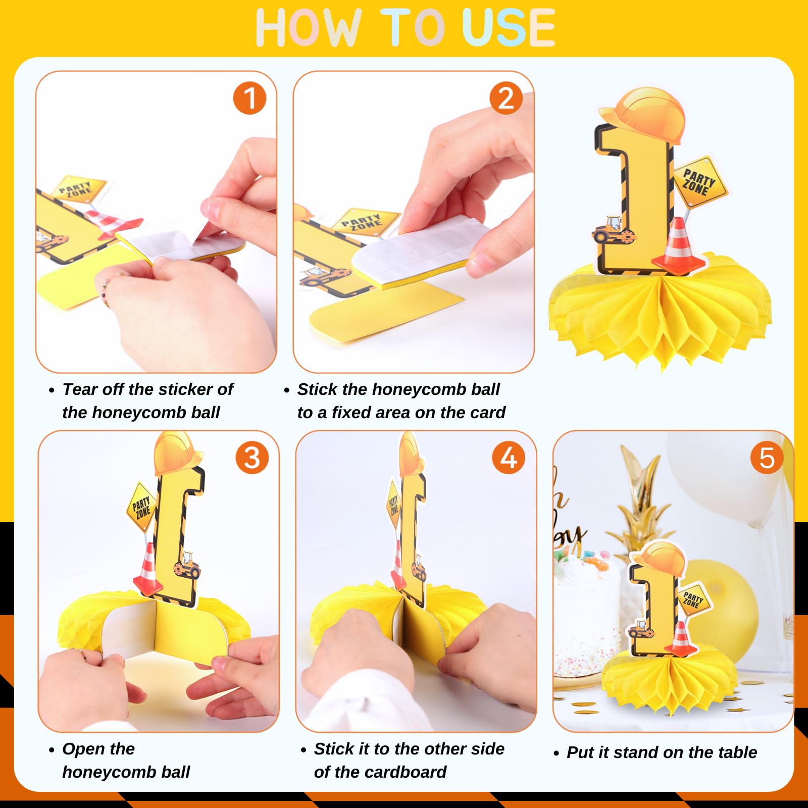 Wide Application: This construction birthday table topper sign decorations can be hung on the ceiling, the birthday backdrop, or placed on tables. Suitable for 1st birthday celebration and baby shower party. To make decorating the honeycomb centerpieces a breeze, it includes double-sided tape, which ensure that you can easily use