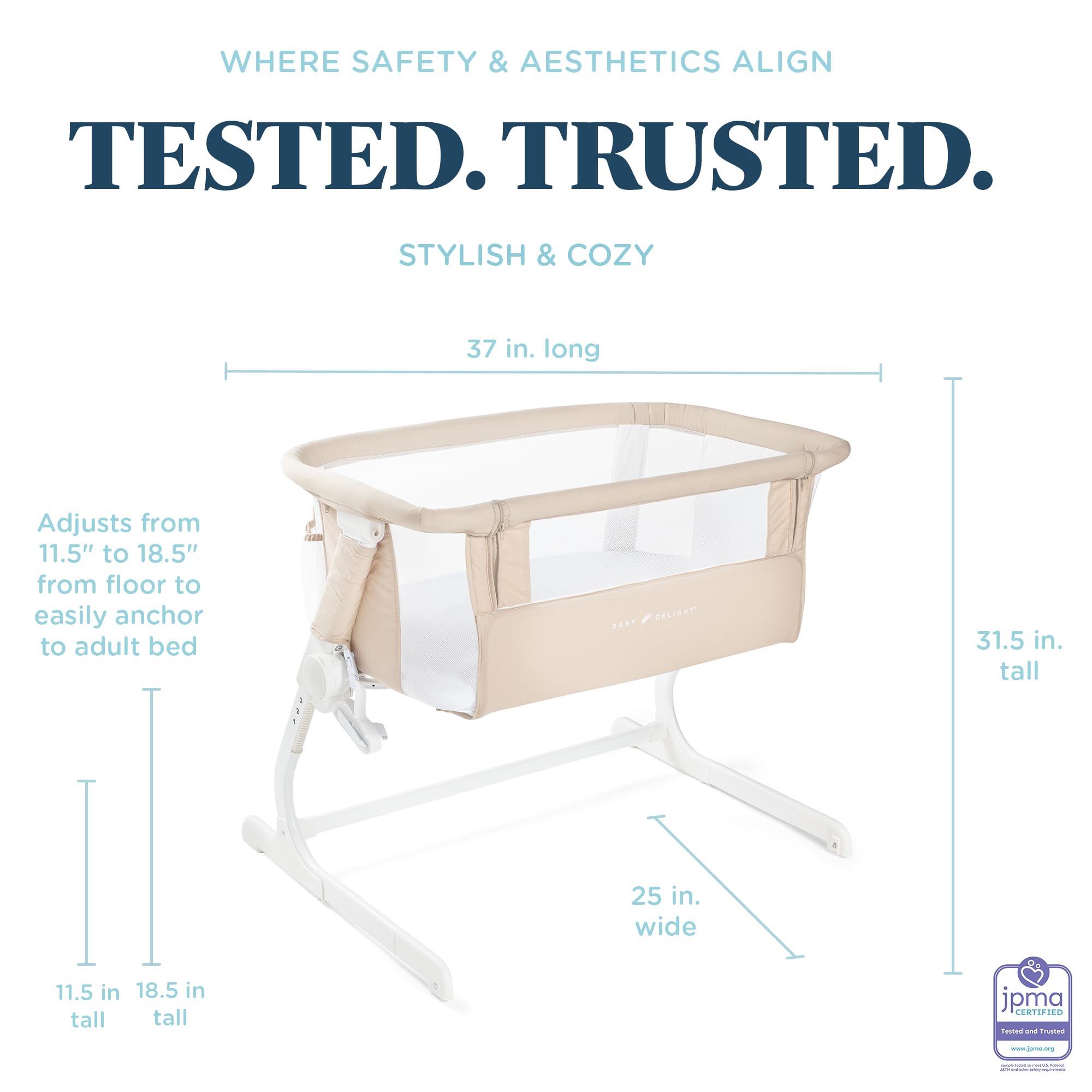 STYLYISH AND COZY: Your little one will rest on a comfy, yet firm mattress surrounded by breathable, mesh walls that keep air circulating. At Baby Delight, we believe that parents should still have beautiful things. Because of that, the Beside Me Dreamer Bassinet is meant to fit in any home’s decor.