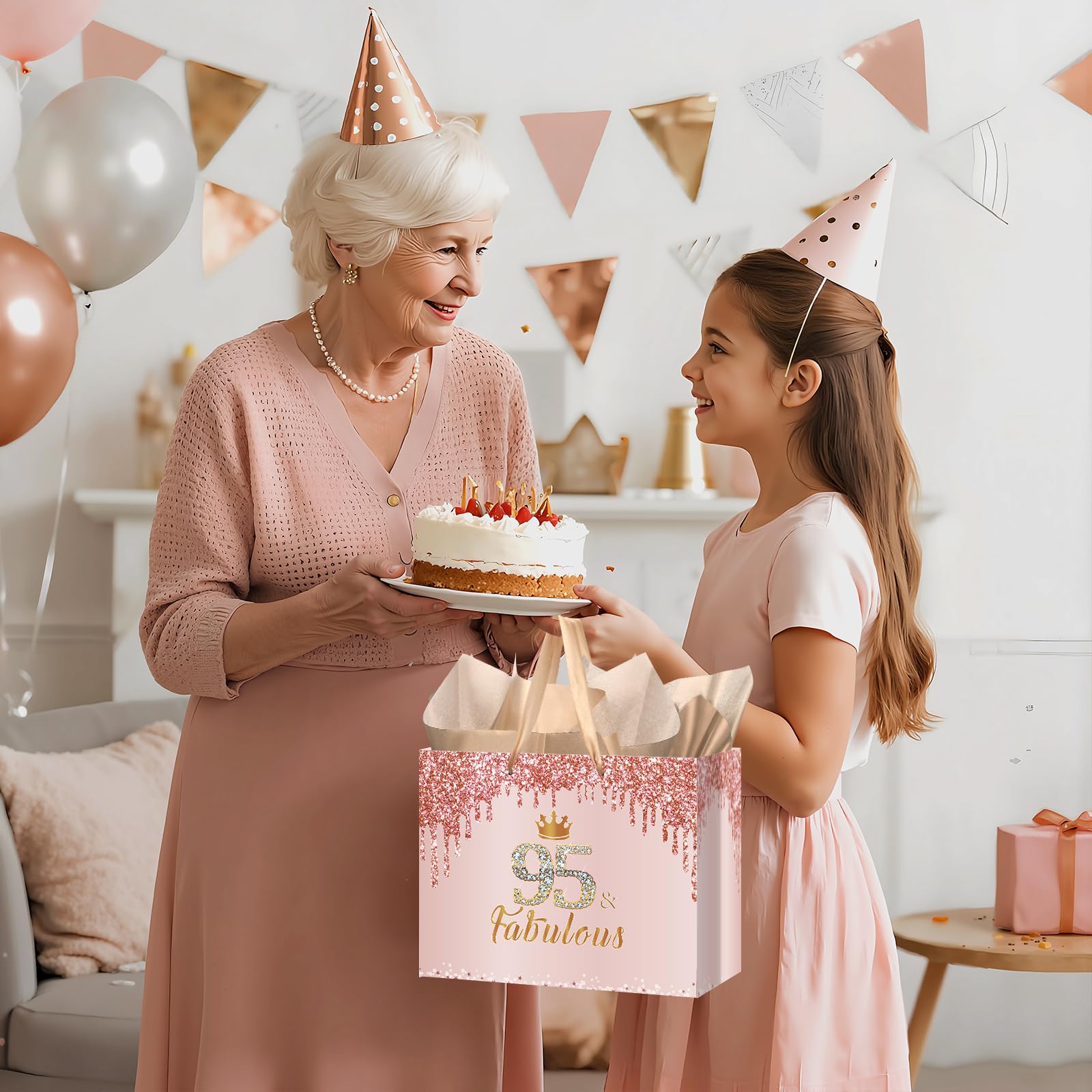 đă95 & Fabulous Birthday Gift BagăThe rose gold 95th birthday gift bag for women comes in rose gold, gold and silver, which features glitter rose gold prints and 95 & Fabulous.