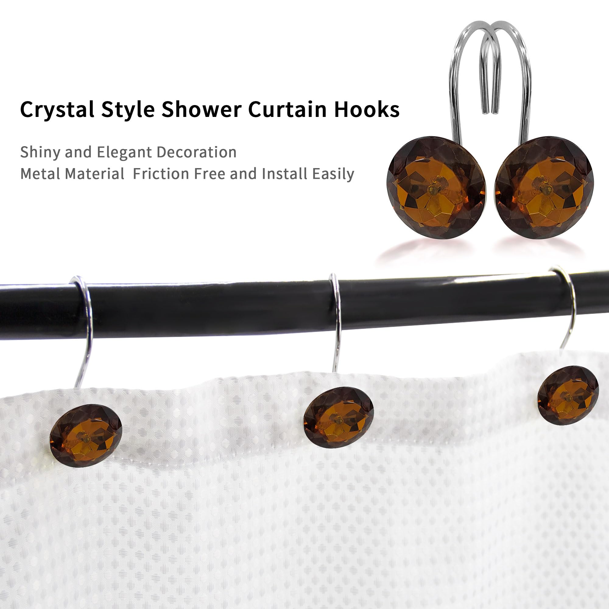 STYLISH AND FUNCTIONAL - Elevate the look of your shower curtain with these hooks featuring a sleek and modern design. The addition of rhinestone decorative accents adds a touch of elegance that complements any bathroom decor.