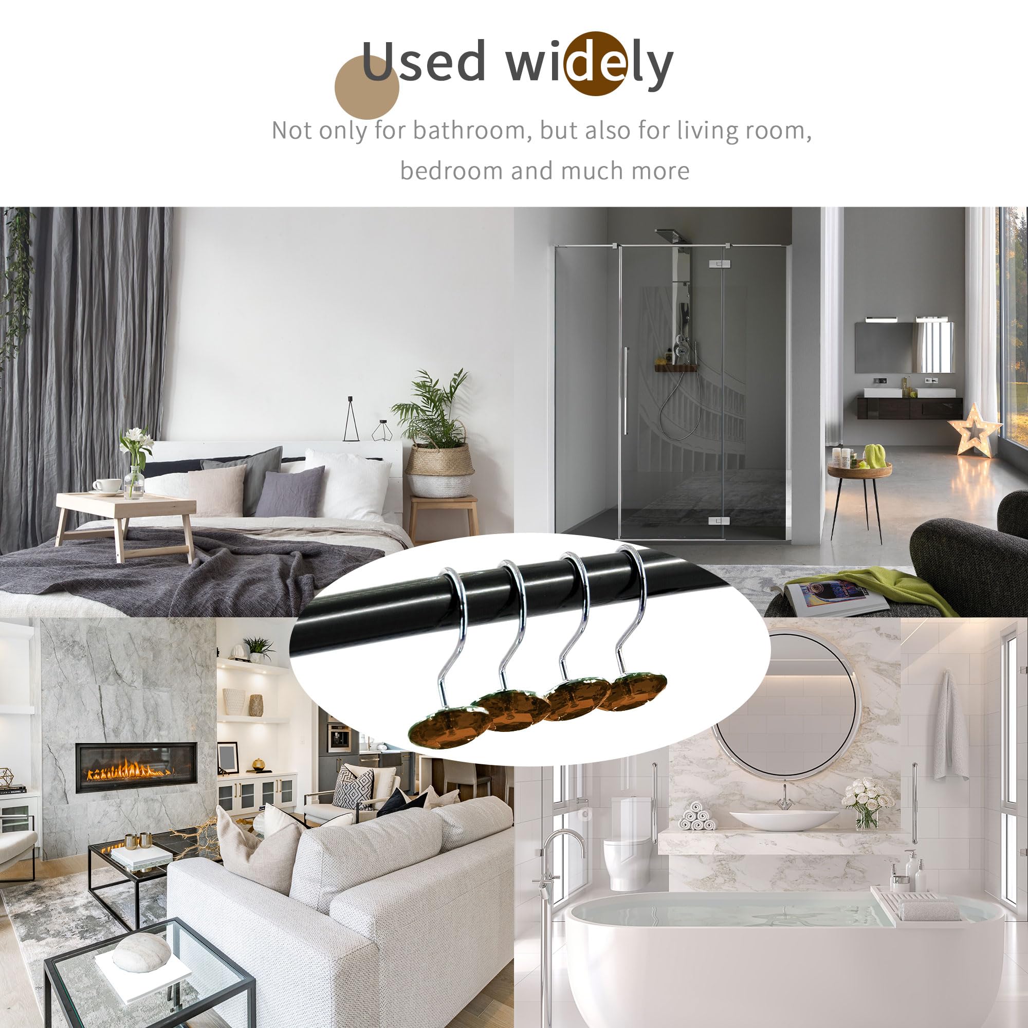 EASY INSTALLATION - Installing these hooks is a breeze, PACKAGED OF 12 PCS. Simply slide them onto your shower curtain rod and effortlessly hang your curtain. Their smooth glide along the rod makes opening and closing your shower curtain effortless.