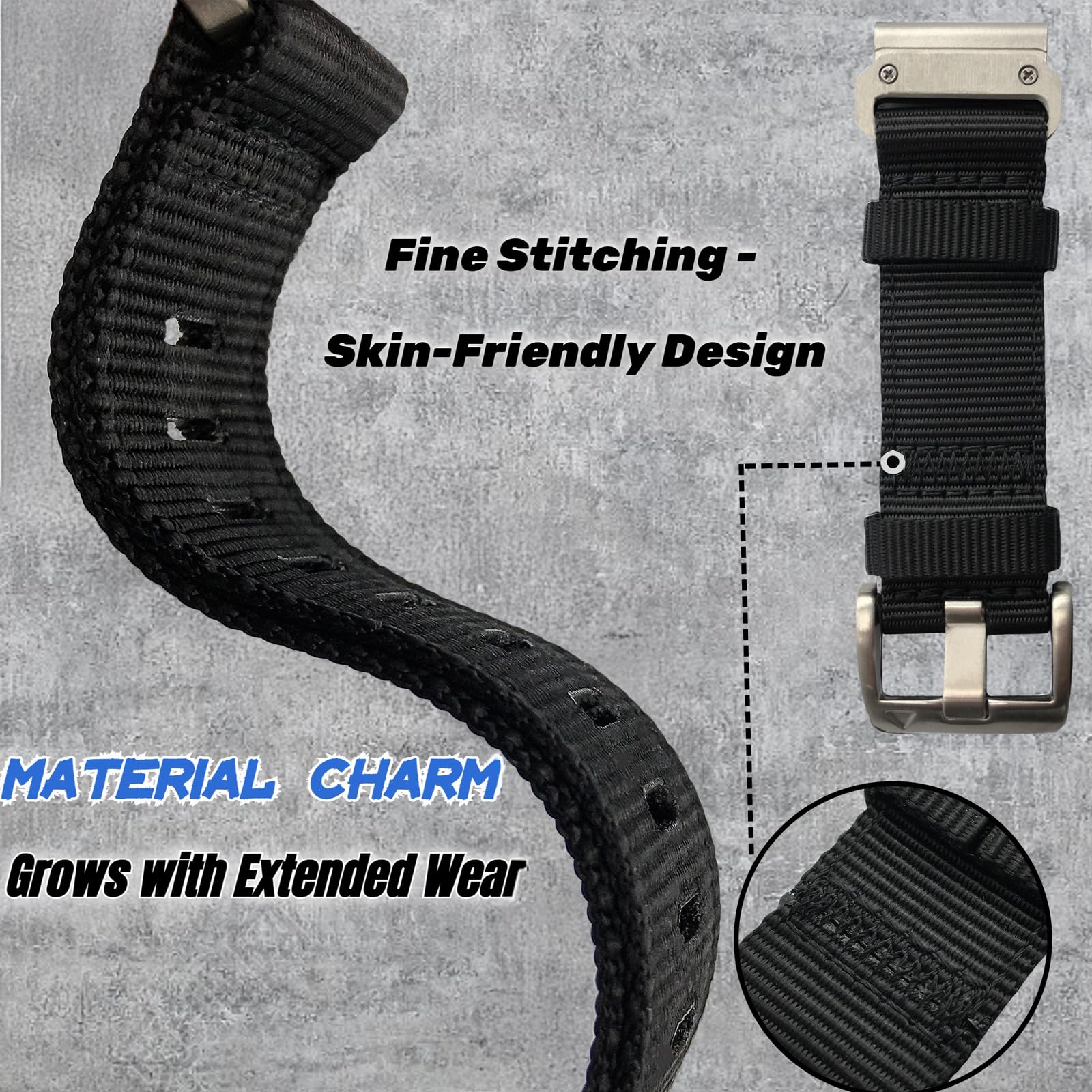 🔹【Size Guide】QuickFit 22mm fits 47mm case; 26mm fits 51mm case. Please check your watch case size or see product description details. Introducing EKINGEEK nylon watch strap designed for Garmin, featuring the second generation of high-quality nylon material. Newly released in March 2024, it offers enhanced softness while maintaining its shape—a result of improved craftsmanship and materials. As we continue to explore refinements in our processes, elevate your comfort with this latest addition.