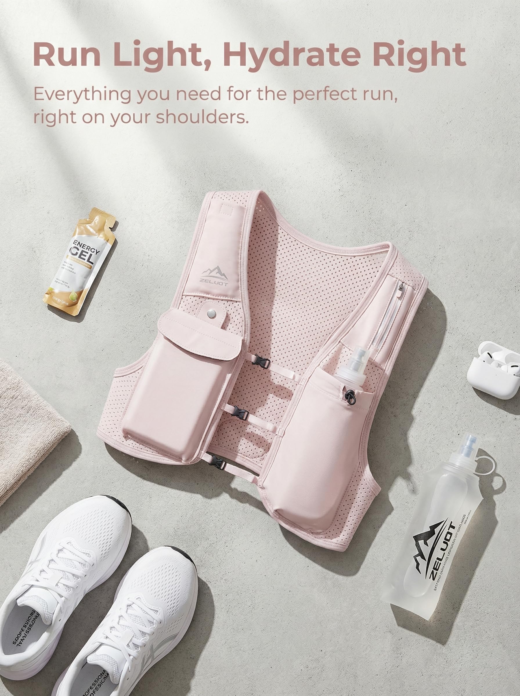 Breathable and Featherlight - Zelvot hydration vest is made from breathable, lightweight neoprene with triple-sized ventilation holes for accelerated air circulation and moisture-wicking. It barely tips the scales at 7.5 ounces, ensuring it won't slow you down. Reflective logo and strip on the front and back increase safety in low-visibility scenarios. This reflective running vest makes every run farther, safer, and more comfortable