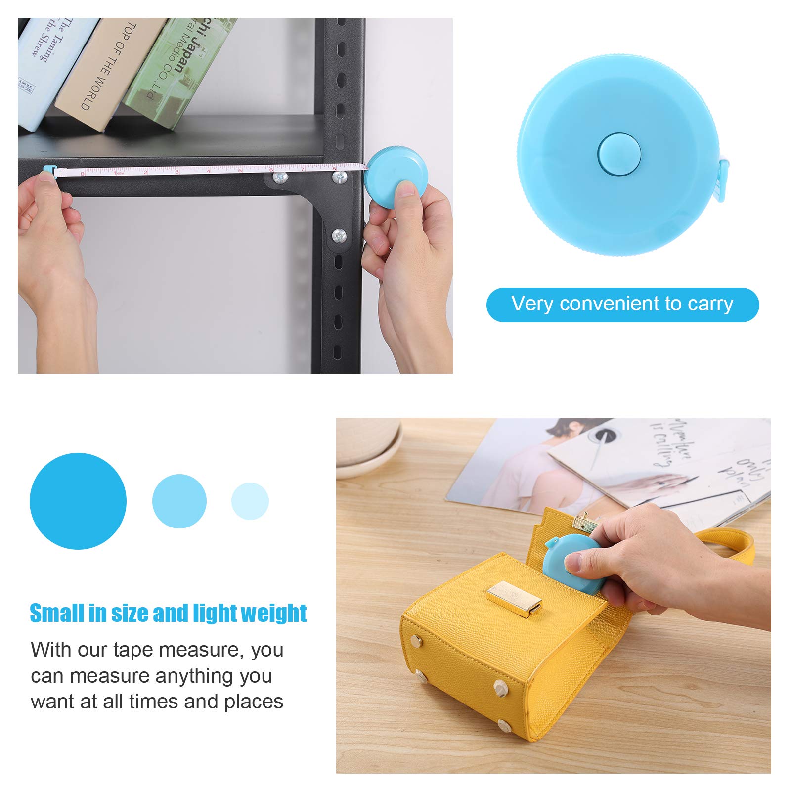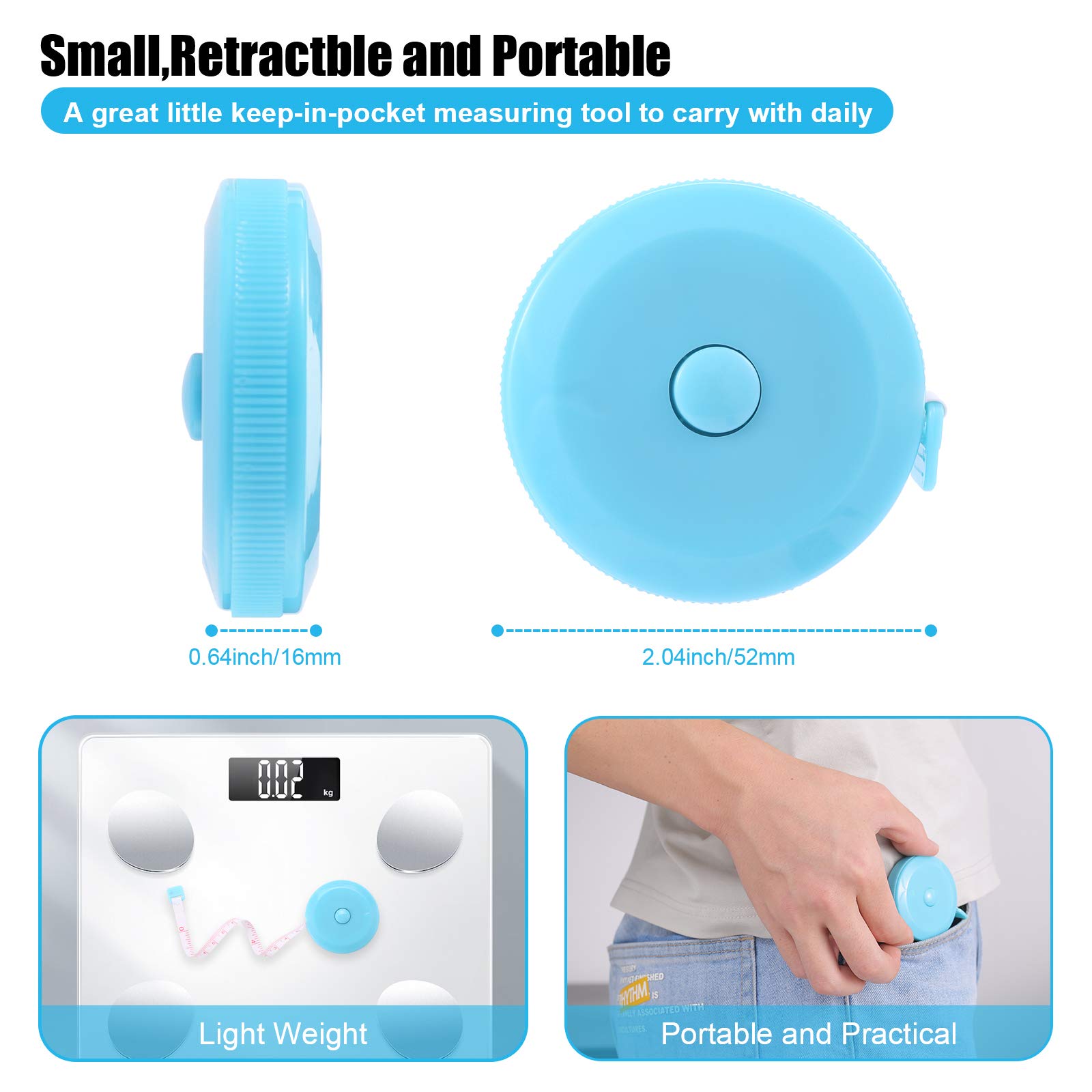 【Portable, Easy to Carry & Storage】- You can put it in purse or pocket, the plastic tape is small and won’t occupy any space. It can be used to measure clothes, your height, check up the waistline when you on a diet, record the head circumference of babies, your body measures etc.