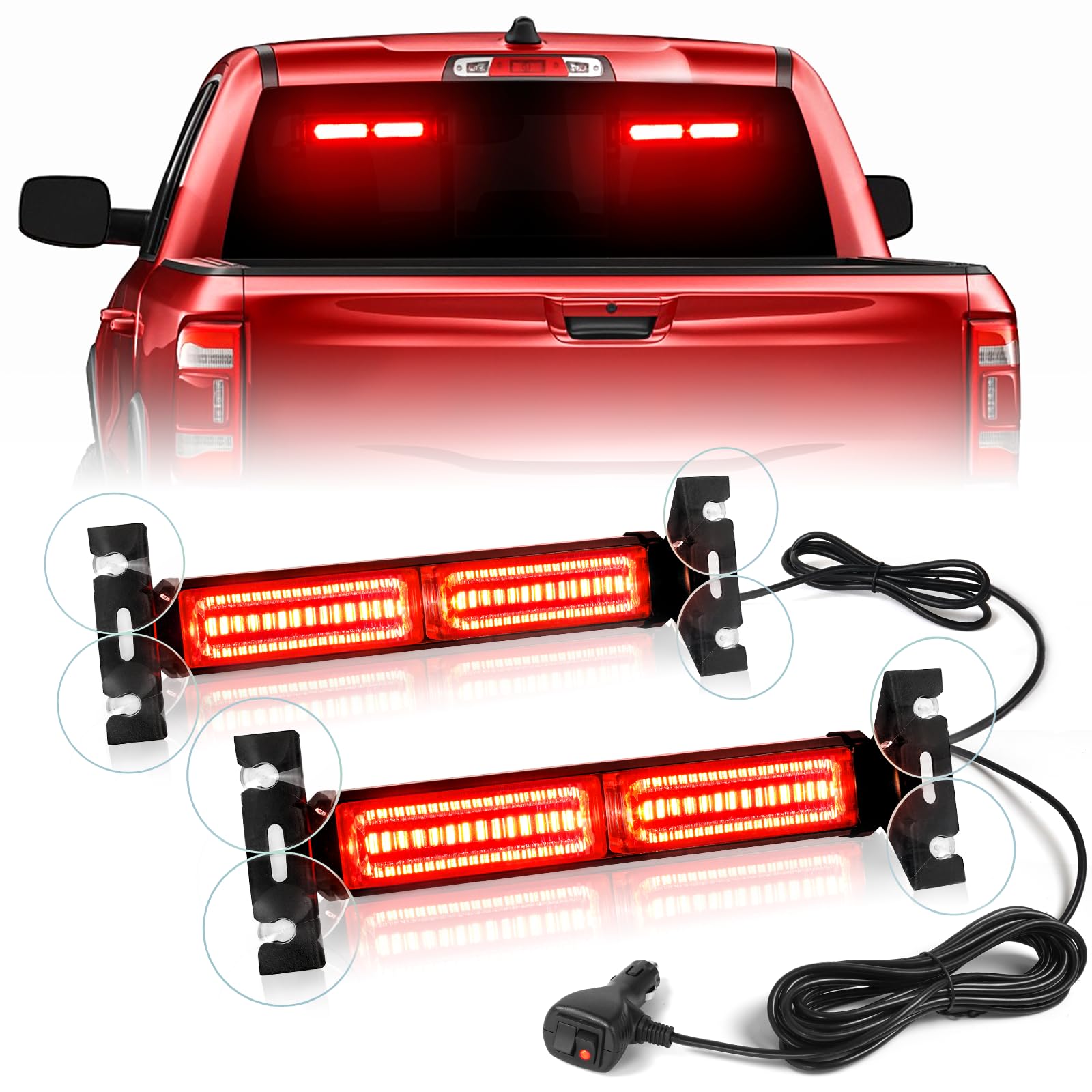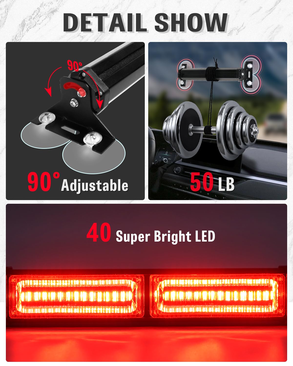 【EASY TO INSTALL】: Equipped with 4 and 90° adjustable strong and stability suction cups brackets, 8 strong suction cups, and 16.4ft long cable, you can easily install this 2 in 1 windshield emergency strobe lights on your rear/front windshield, and exterior of vehicles
