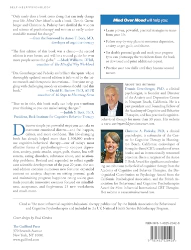 Discover simple yet powerful steps you can take to overcome emotional distress--and feel happier, calmer, and more confident. This life-changing book has already helped more than 1,300,000 readers use cognitive-behavioral therapy--one of today's most effective forms of psychotherapy--to conquer depression, anxiety, panic attacks, anger, guilt, shame, low self-esteem, eating disorders, substance abuse, and relationship problems. Revised and expanded to reflect significant scientific developments of the past 20 years, the second edition contains numerous new features: expanded content on anxiety; chapters on setting personal goals and maintaining progress; happiness rating scales; gratitude journals; innovative exercises focused on mindfulness, acceptance, and forgiveness; 25 new worksheets; and much more. Mind Over Mood will help you: Learn proven, powerful, practical strategies to transform your life. Follow step-by-step plans to overcome depression, anxiety, anger, guilt, and shame. Set doable personal goals and track your progress (you can photocopy the worksheets from the book or download and print additional copies). Practice your new skills until they become second nature. Cited as “The Most Influential Cognitive-Behavioral Therapy Publication” by the British Association for Behavioural and Cognitive Psychotherapies and included in the UK National Health Service Bibliotherapy Program. Winner (Second Place)--American Journal of Nursing Book of the Year Award, Consumer Health Category See also the Spanish-language edition: El control de tu estado de ánimo, Segunda edición. Plus, mental health professionals, see also The Clinician's Guide to CBT Using Mind Over Mood, Second Edition