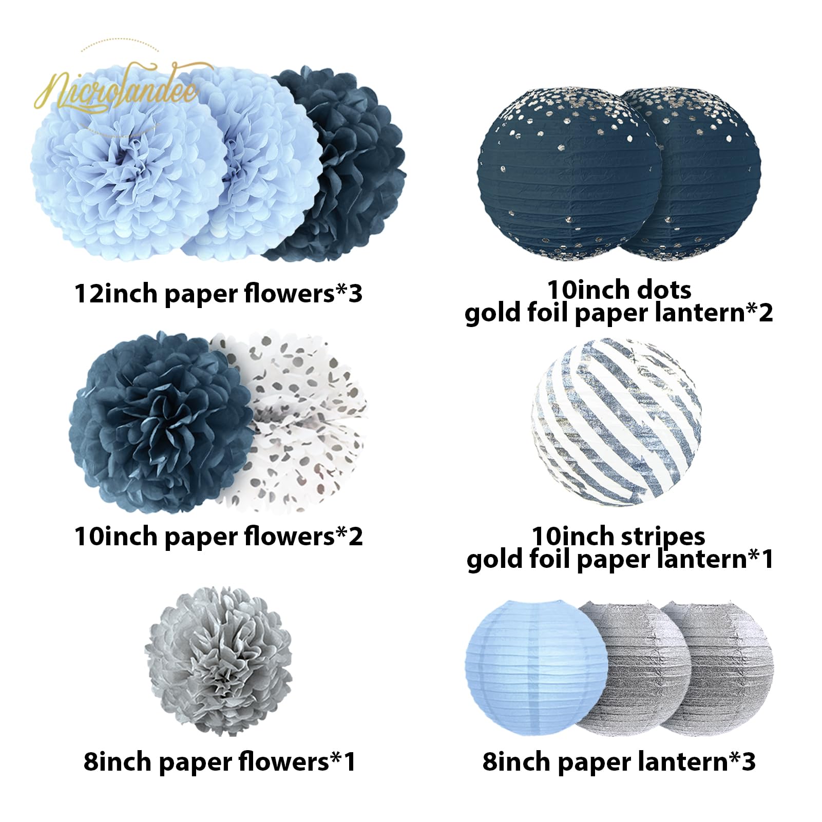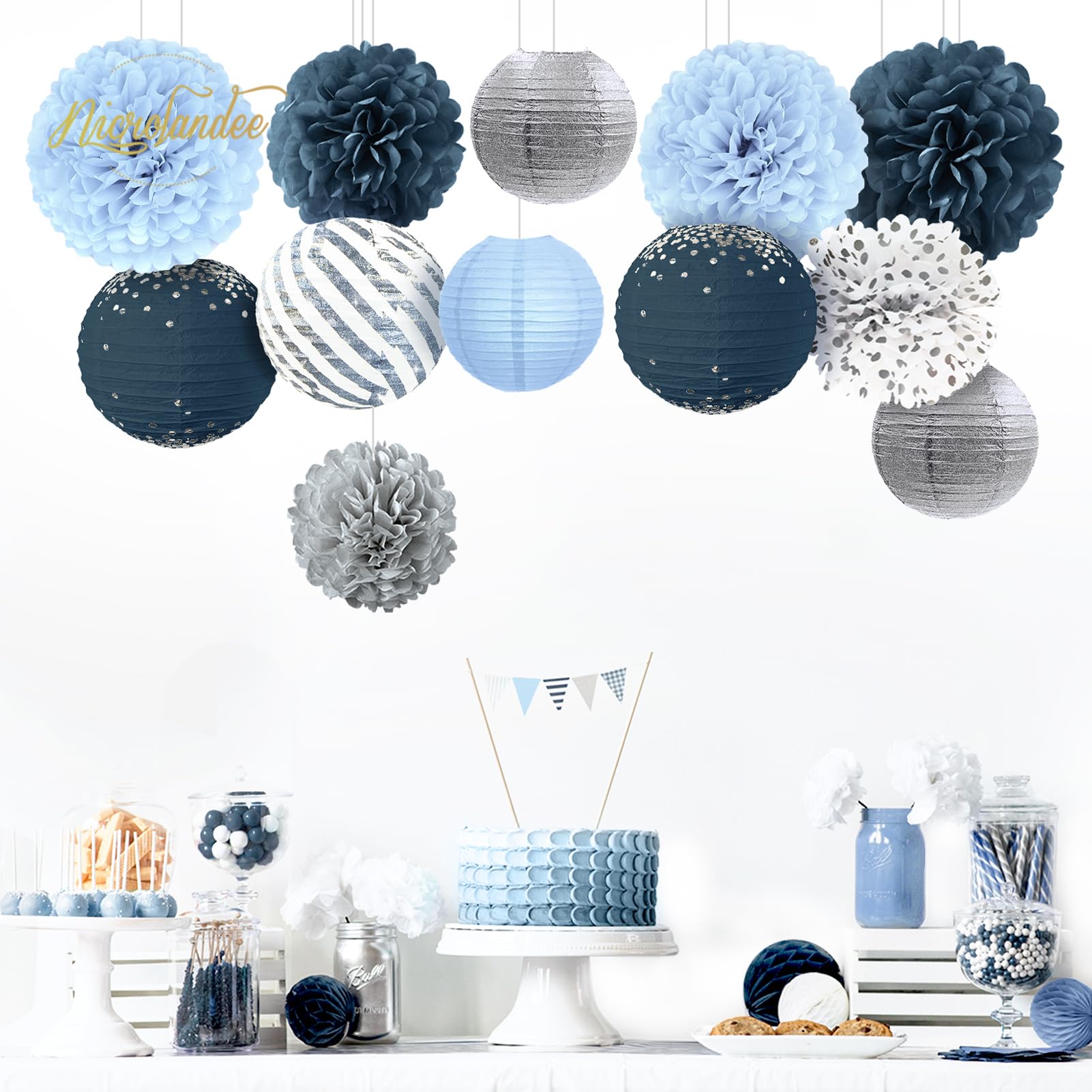 Dusty Blue Party Decorations: This dusty blue party decor will add a romantic touch to party. The color combination of dark blue, dusty blue and gray makes the party more unique and impressive