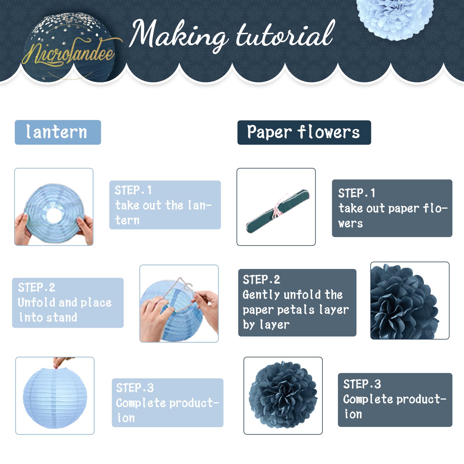 Package includes: 6 PCS tissue pompoms and 6 PCS paper lanterns. The quantity of this wedding decoration is enough to meet your decoration needs. You can hang this paper decoration set from the ceiling or use them as table decorations according to your decoration ideas