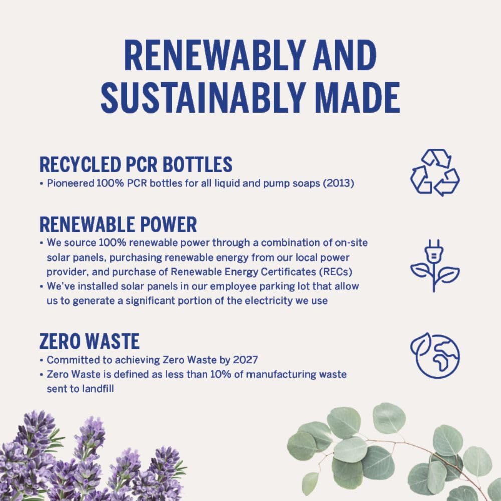 NO SYNTHETIC PRESERVATIVES, DETERGENTS, OR FOAMING AGENTS: Our liquid soaps are made with plant-based ingredients you can pronounce—no synthetic preservatives, thickeners, or foaming agents—which is good for the environment & great for your skin!