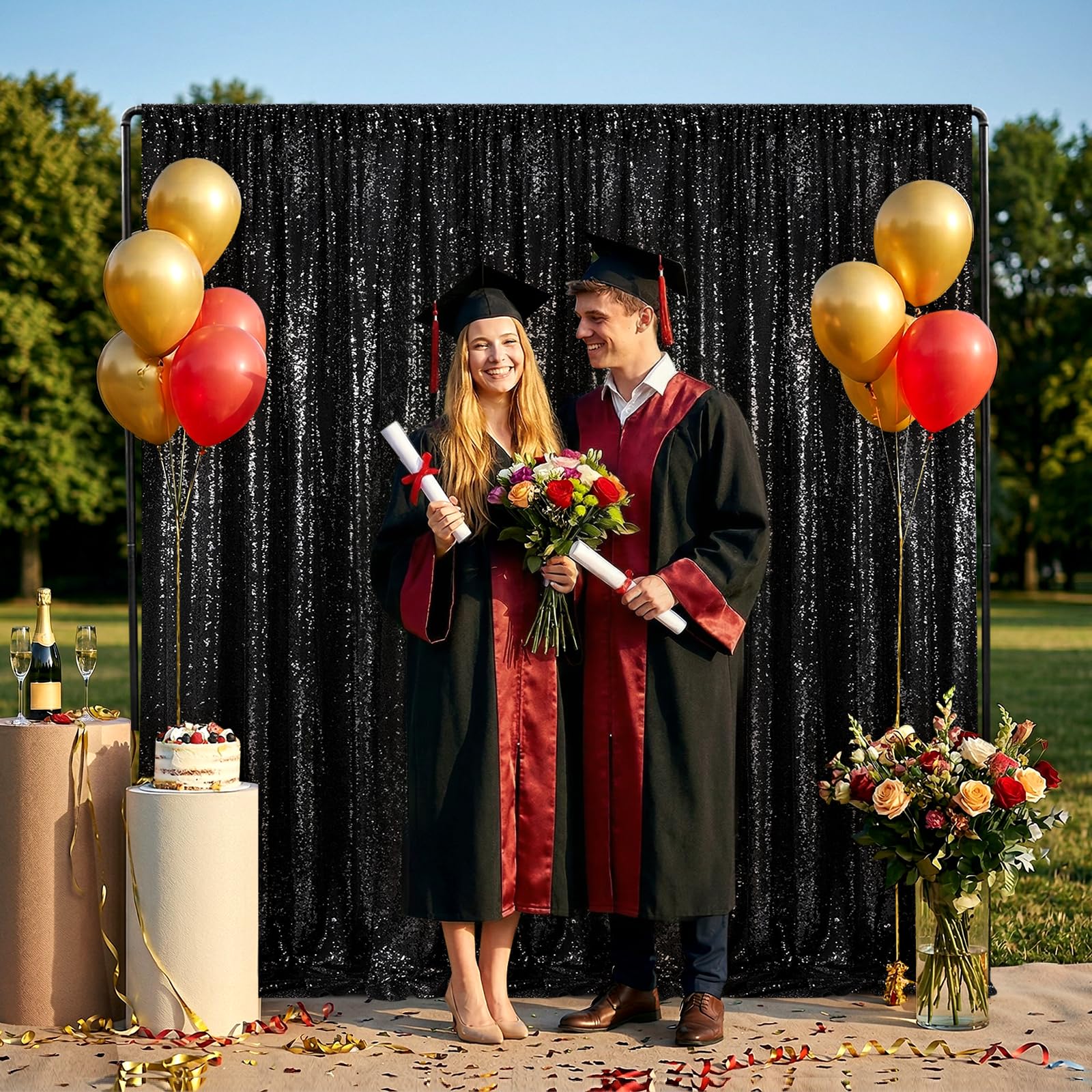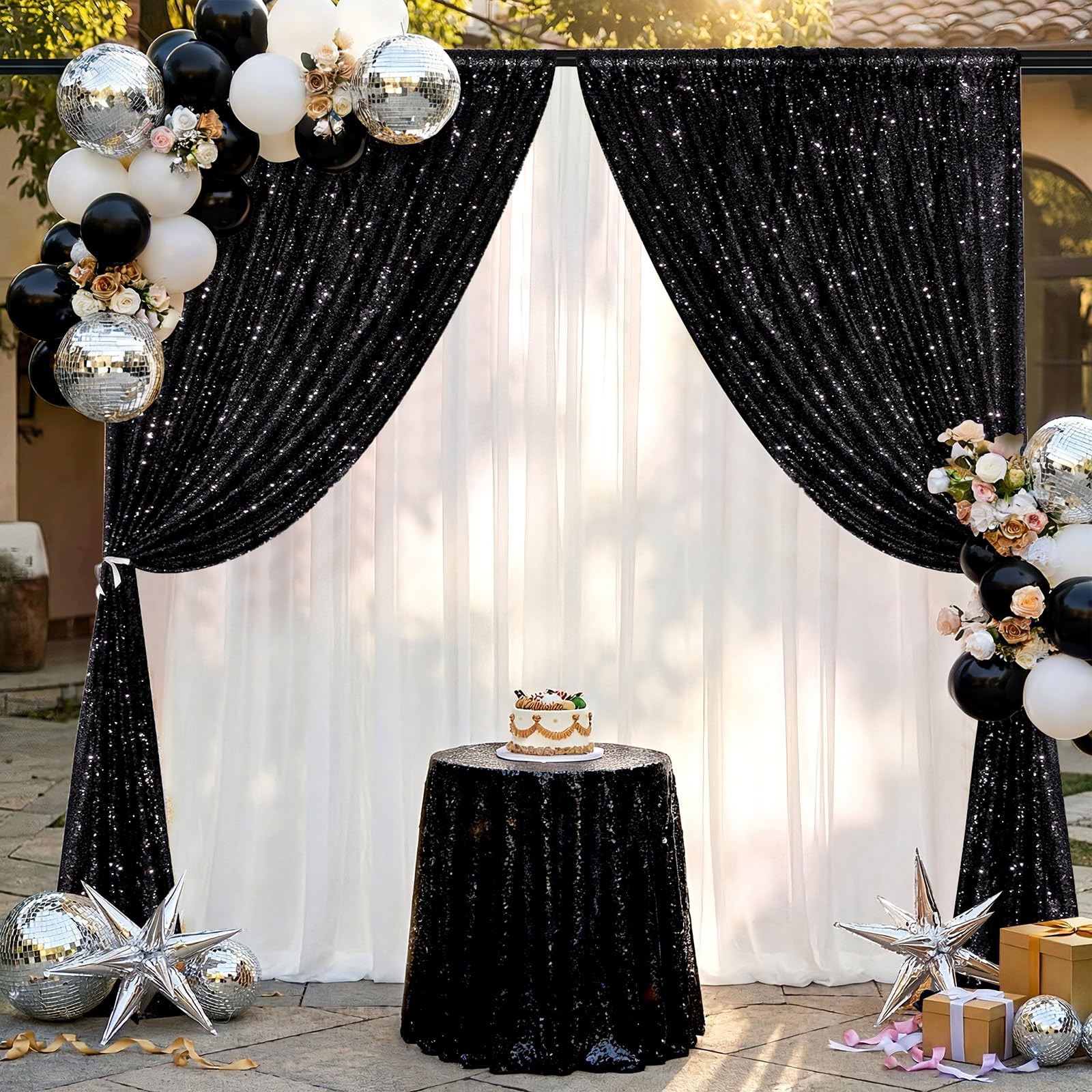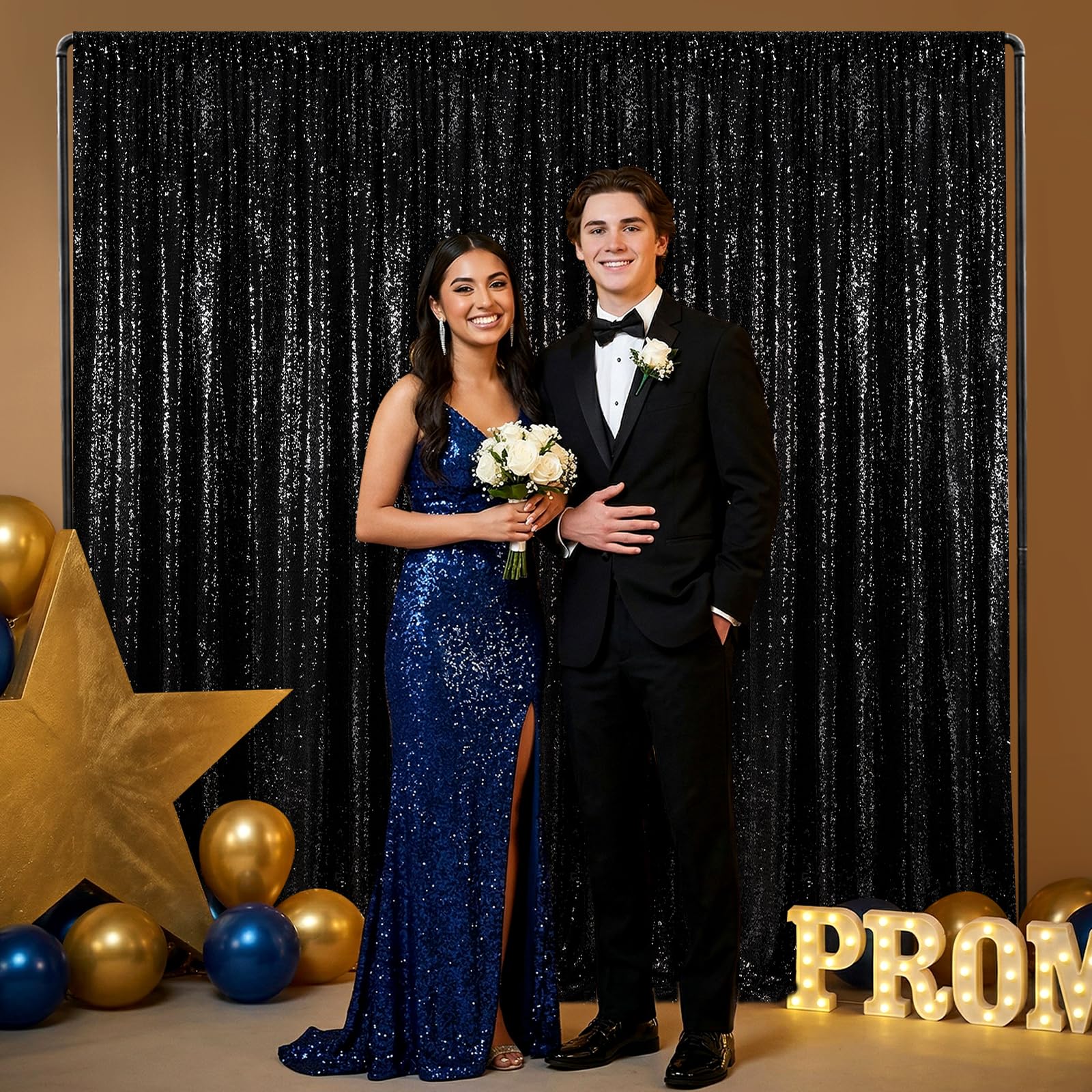 Black Backdrop Curtain:The exquisite backdropcurtain is paired with dazzling sequins.The fabric is thick, wrinkle-free, and reflects light beautifullyperfect for photo booths, weddings, birthdays, or stage decor.
