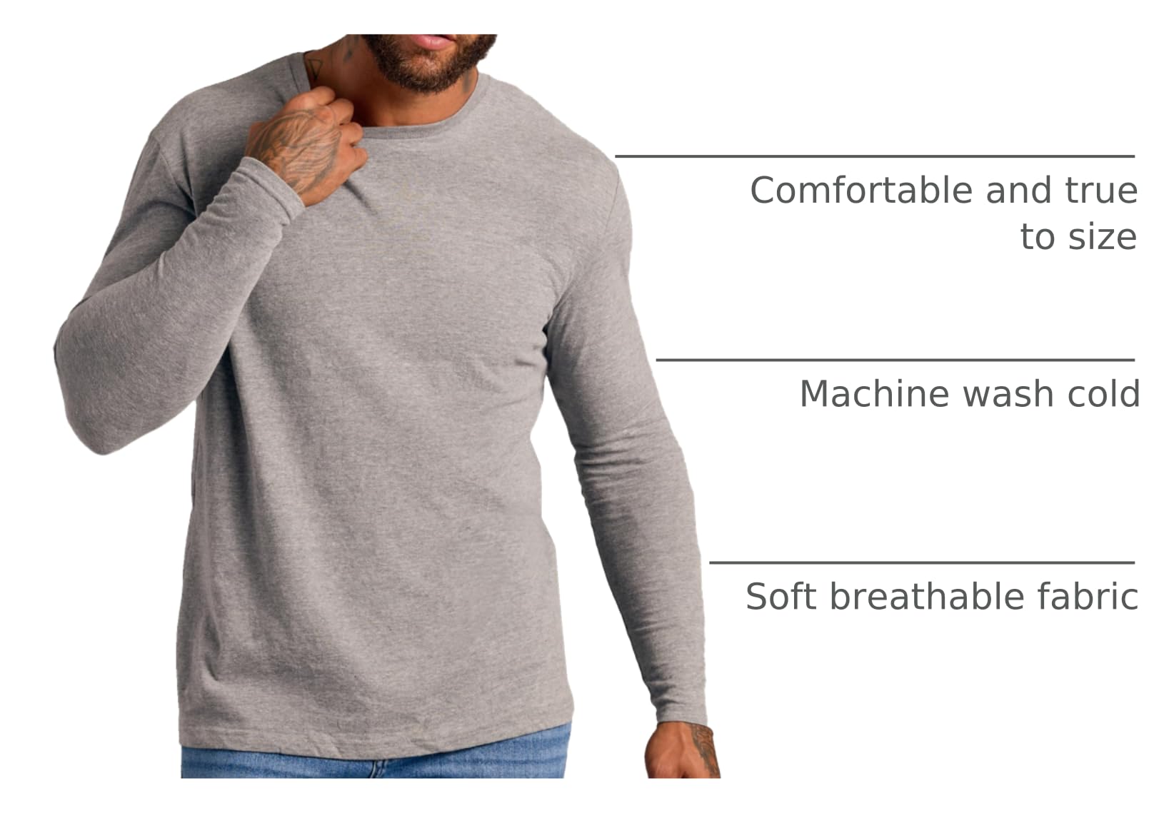 ALL-DAY COMFORT, TAG-FREE: Long sleeve men's t-shirts built for easy wear from workdays to weekends. Our classic crew and mens henley shirts have tagless prints with classic side seams that keep shape with minimal shrinkage (about 5% on low heat).