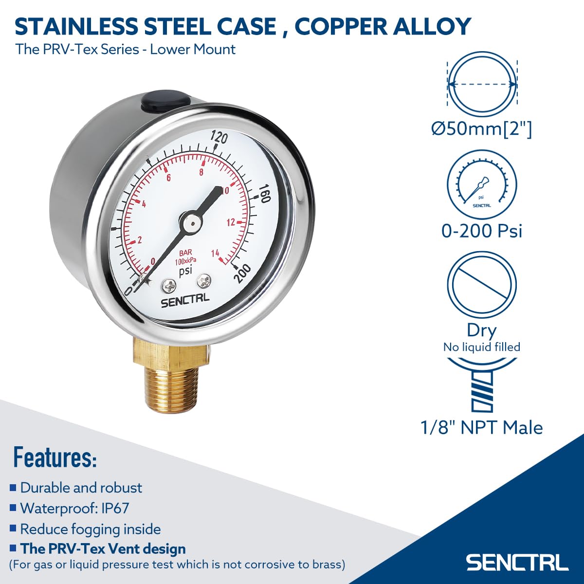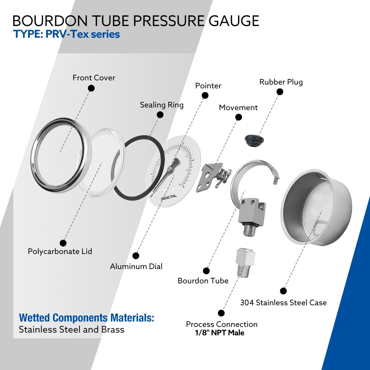 PRV-Tex Series: The circular dial is enclosed in a 304 stainless steel case for corrosion resistance. IP67 waterproof reduces condensation inside causing fogging of the window. Offer clear reading and weather resistance.