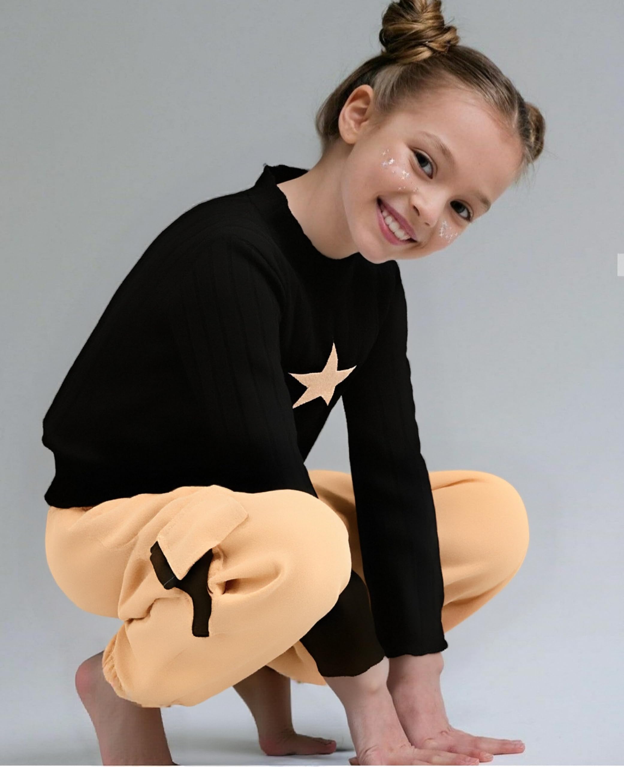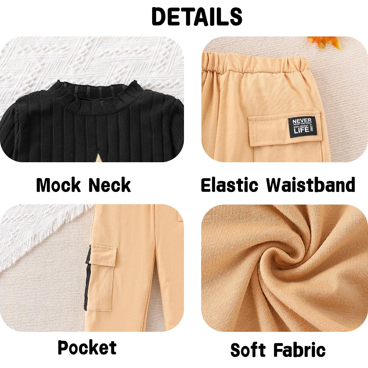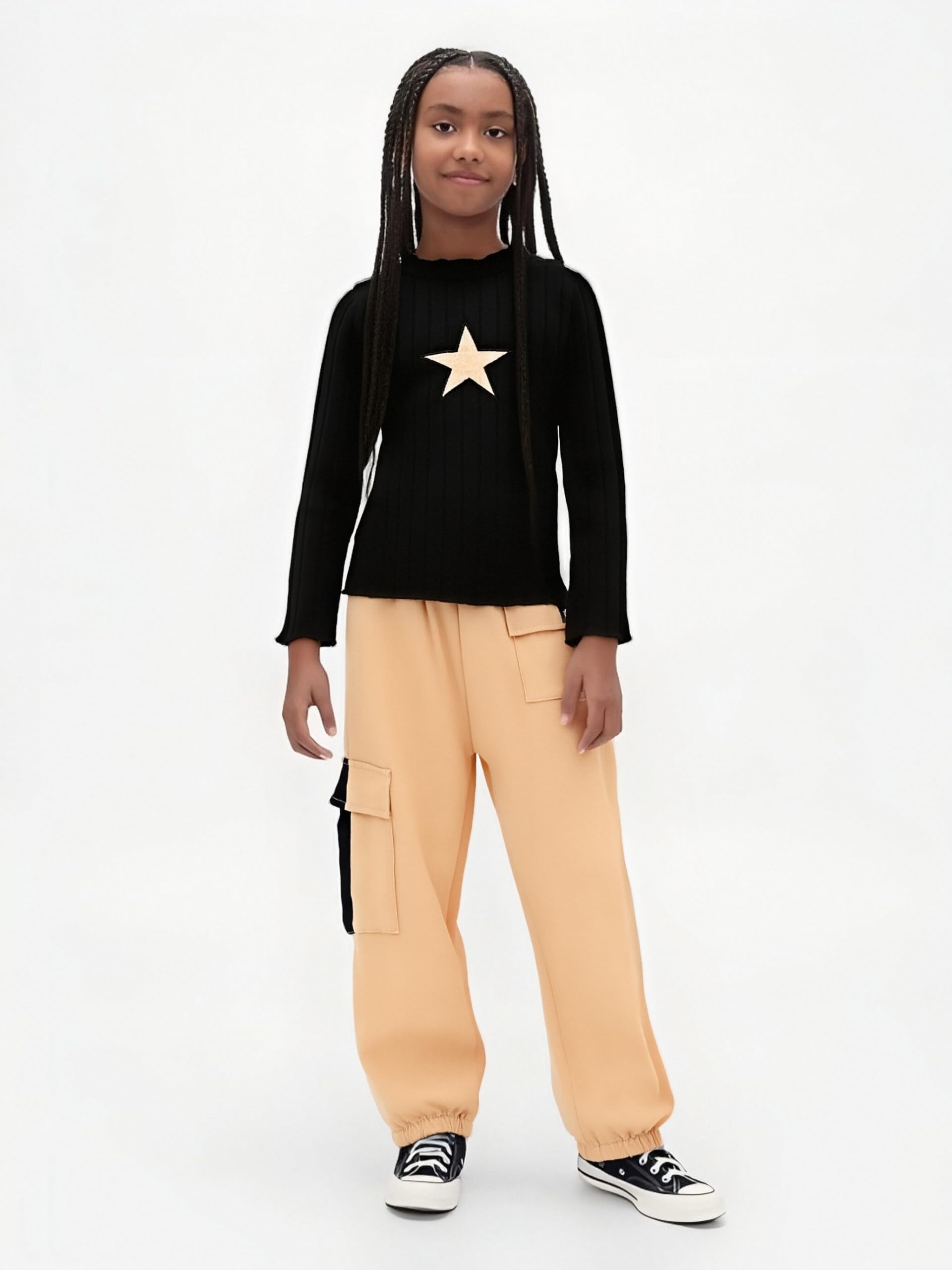🎨 Stylish Design Details - Features a ruched long sleeve sweater top with a classic crew neck and trendy cargo jogger pants. The fashionable combo blends casual comfort with modern tween girls' fashion.