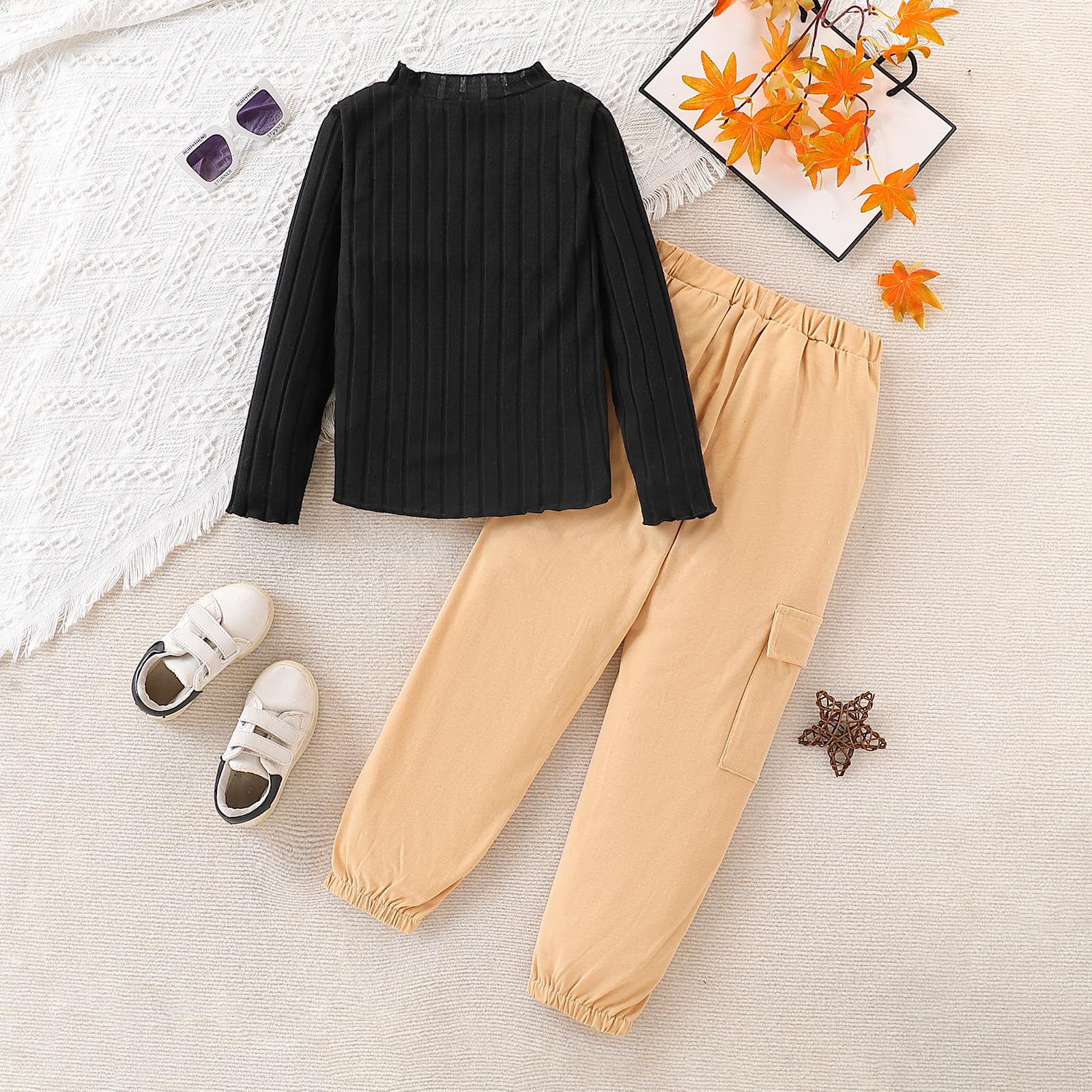 🌸 Comfortable Fabric - Crafted from a soft rib-knit fabric, this girls’ outfit set offers a breathable and cozy feel—ideal for all-day wear during cooler months. Perfect for kids clothing and fall girls outfit collections.