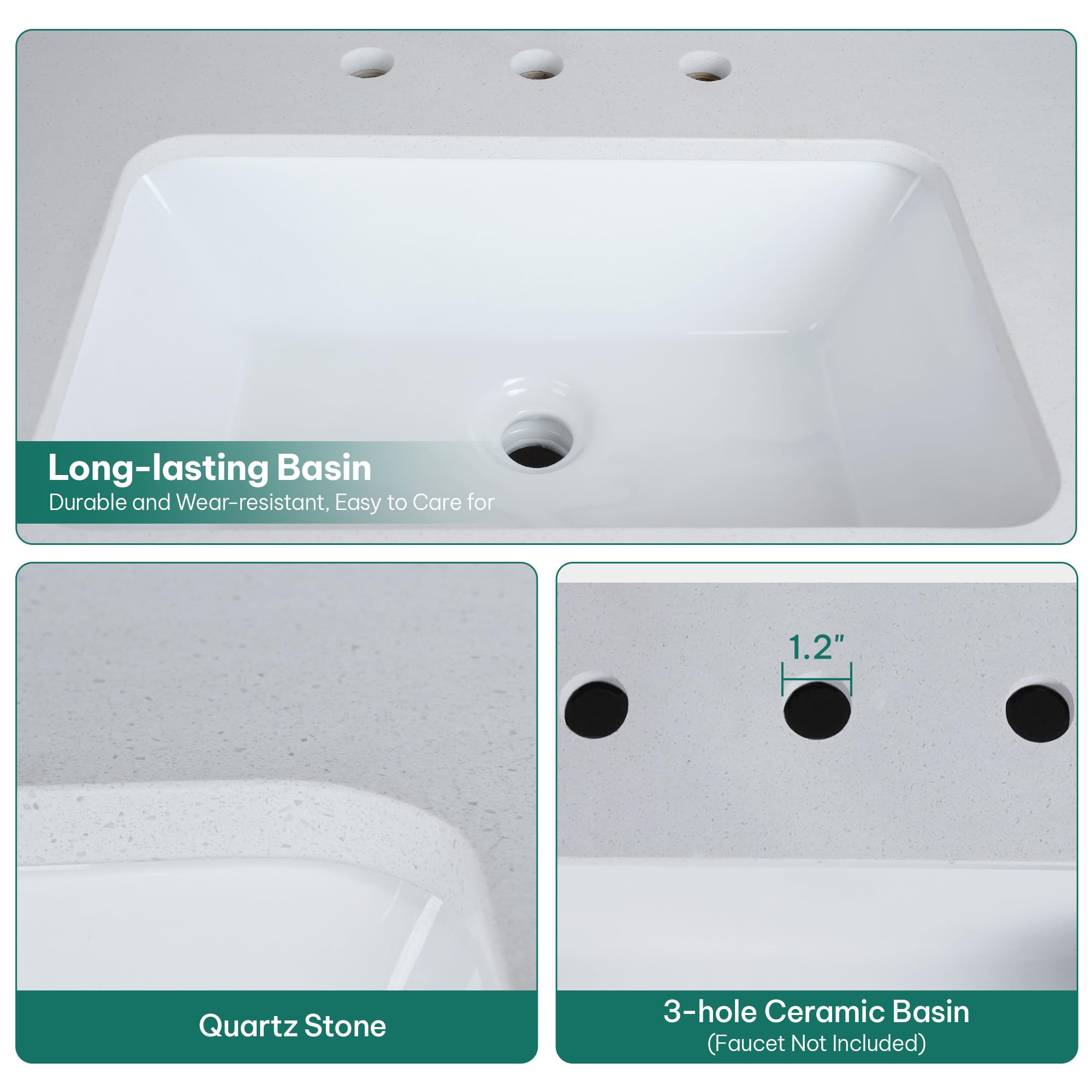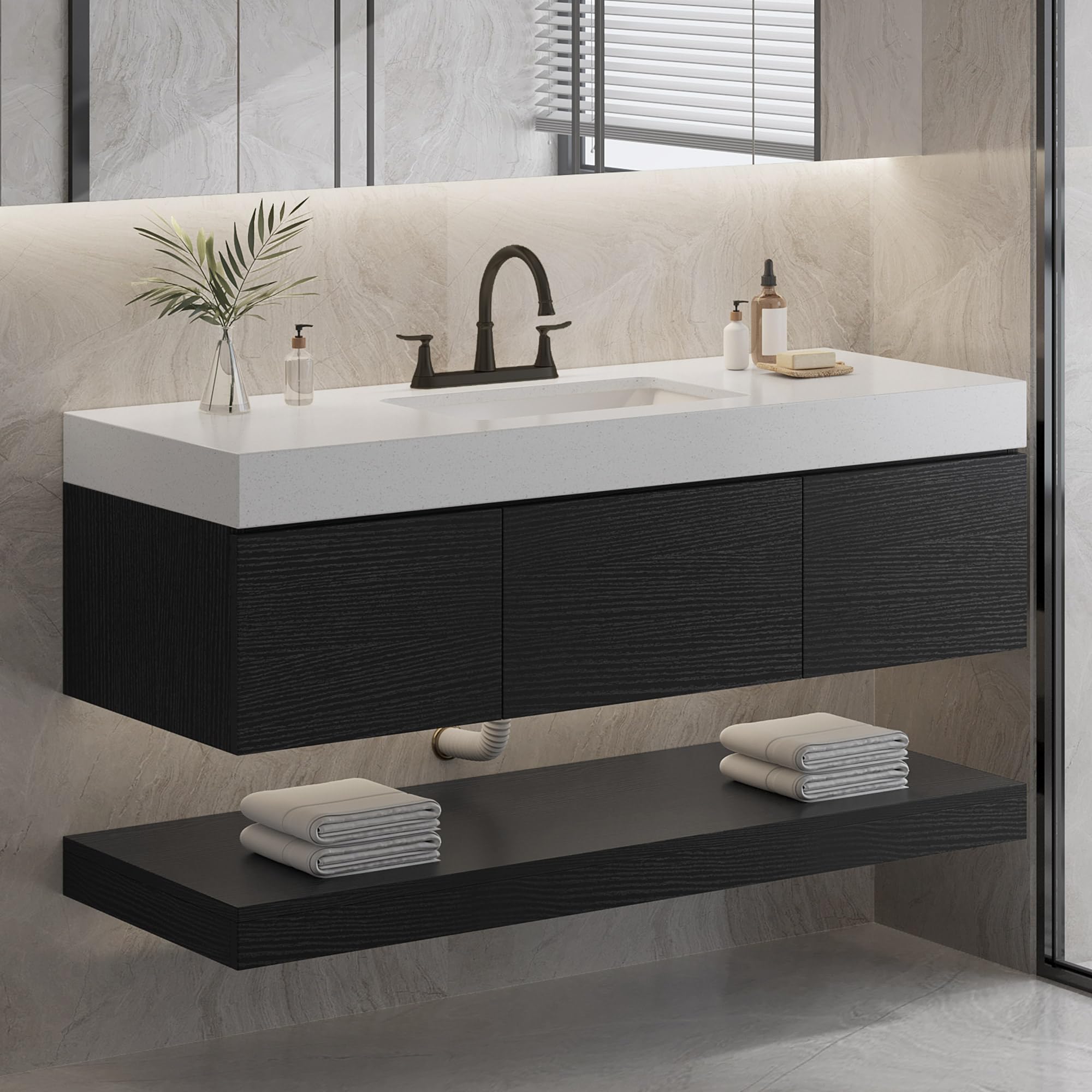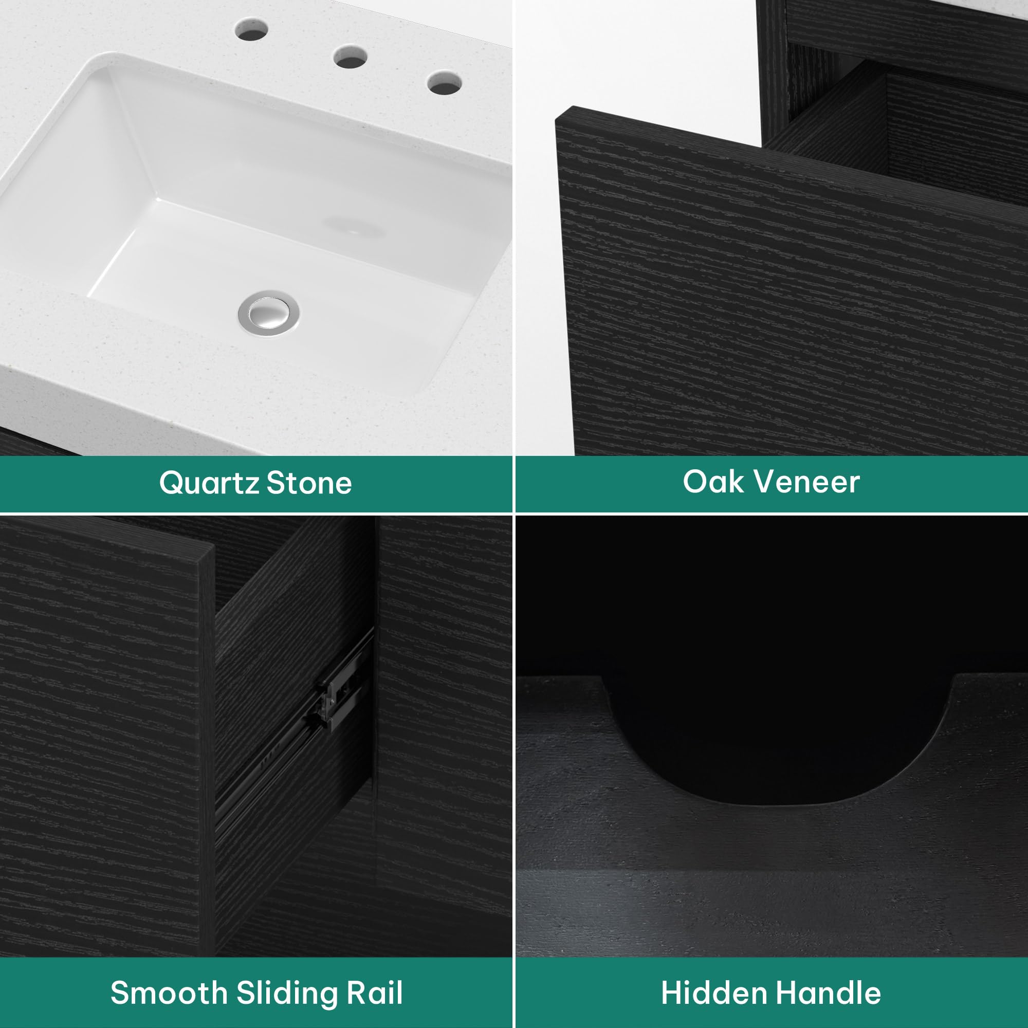 Seamless White Quartz Countertop: Get a stunning, scratch-proof surface on this wall-mounted vanity! High-density quartz is durable, super easy to clean, and built to last – the choice that eliminates your worries.