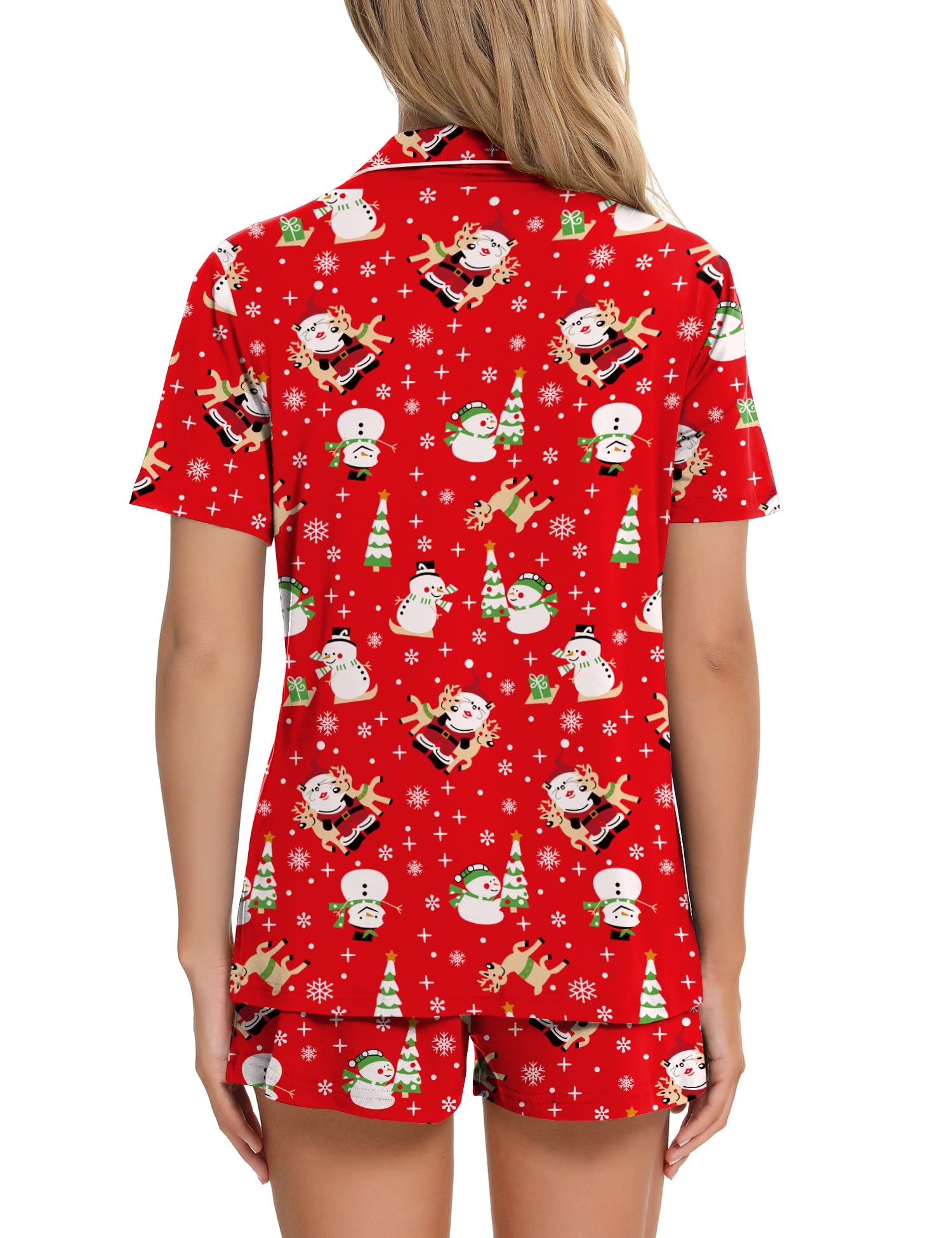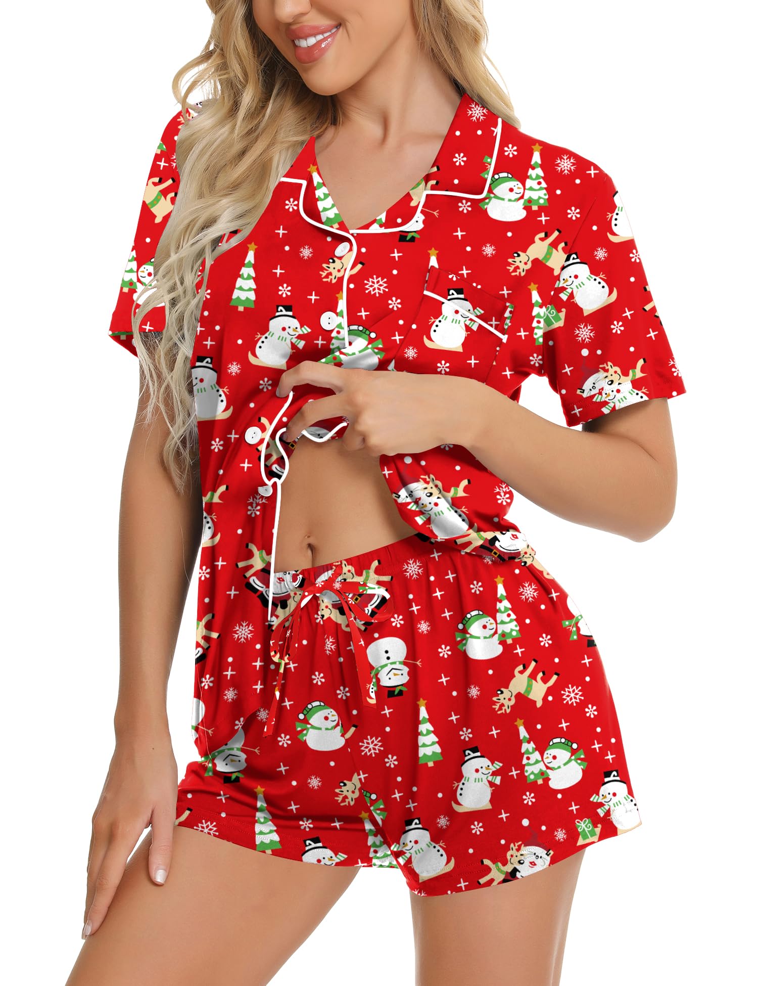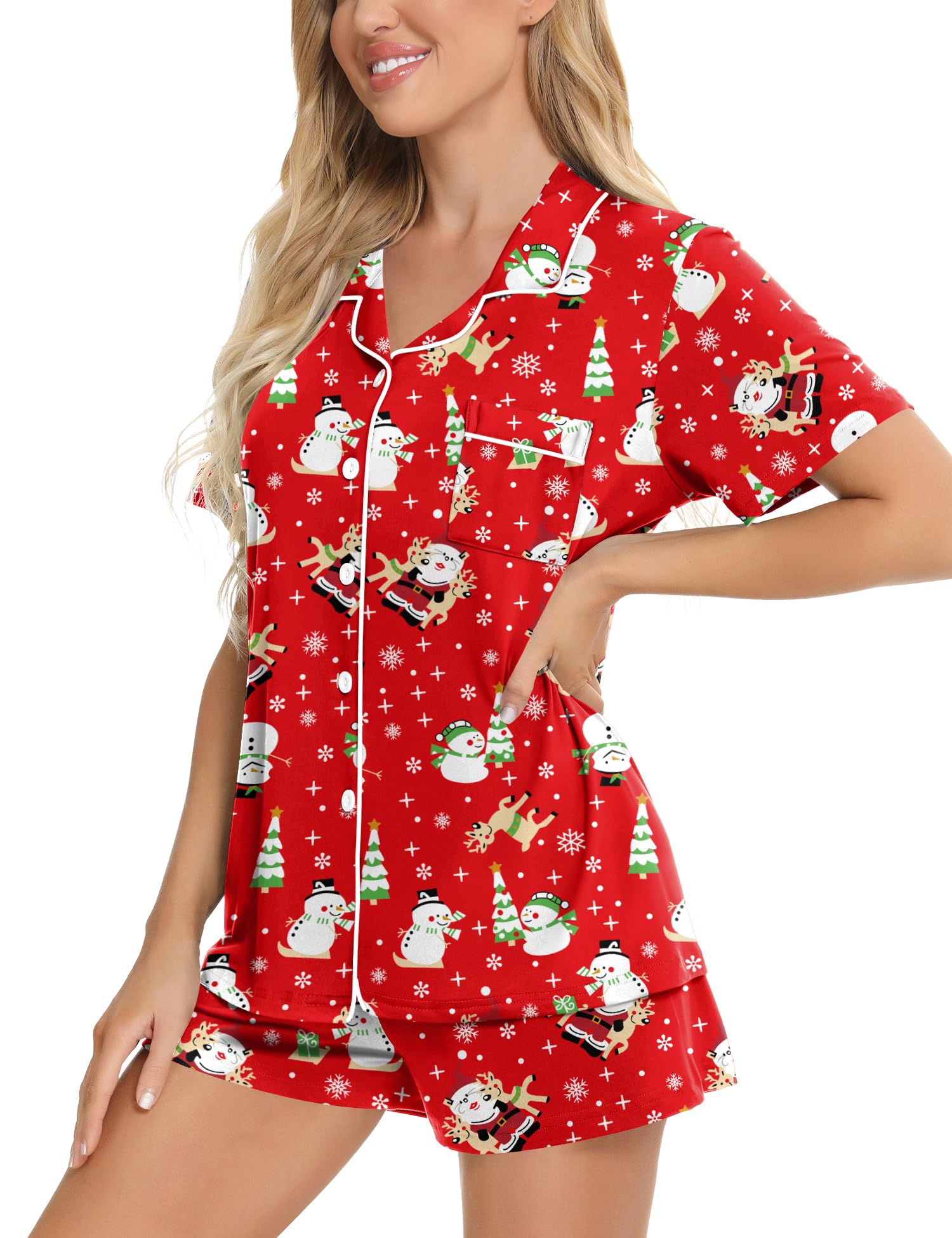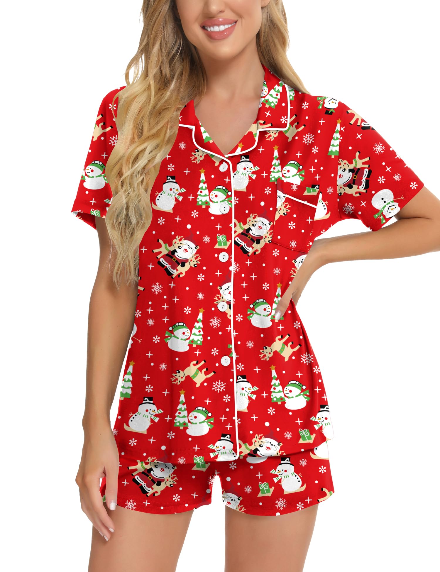❤【PERFECT FIT】Two-Piece Short sleeve pajama set with button front top and shorts for relaxed fit. Short sleeve pajama set features chest pocket, notch collar and contrast piping trim. It's slick and durable, bringing optimum comfort to your leisure time.