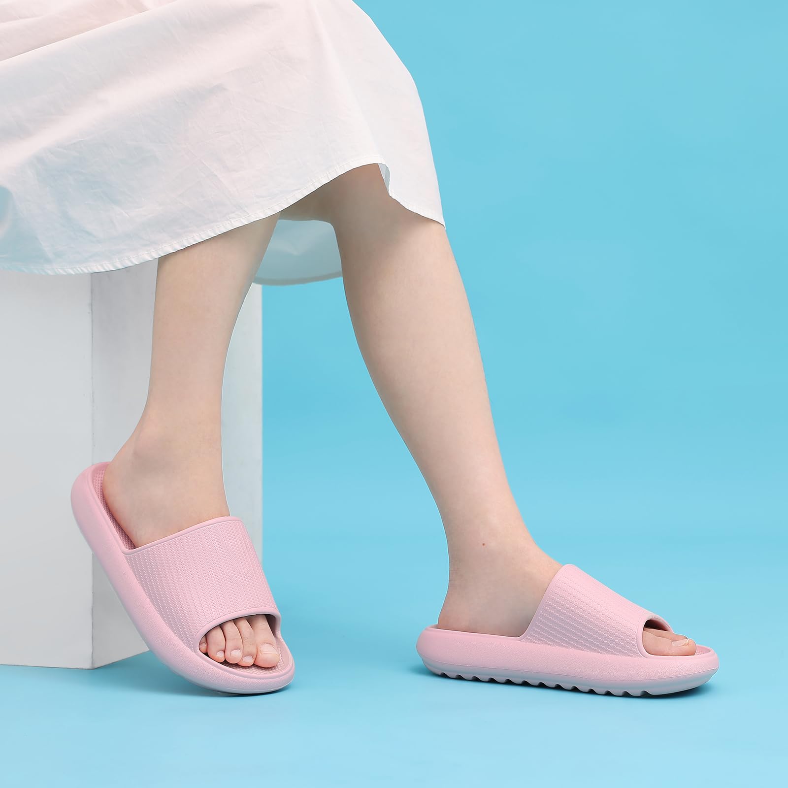 Description Cloud slides feature a concise style and a solid design, suitable for all seasons and occasions such as the bathroom, indoor bedroom, living room, swimming pool, outdoor beach, holidays, spas, leisure activities, public showers, steam rooms, etc. This makes our sandals for women 2025 the ideal choice for various settings.The supportive nature of the EVA material can offer compression resistance. The deep heel cup, along with the cushioned and rebound thick sole, can provide ultra cushioning. When you take a bath, our shower slippers can also protect you from falling due to their strong non-slip ability. Moreover, the quick-drying and breathable properties can offer a more comfortable life experience.