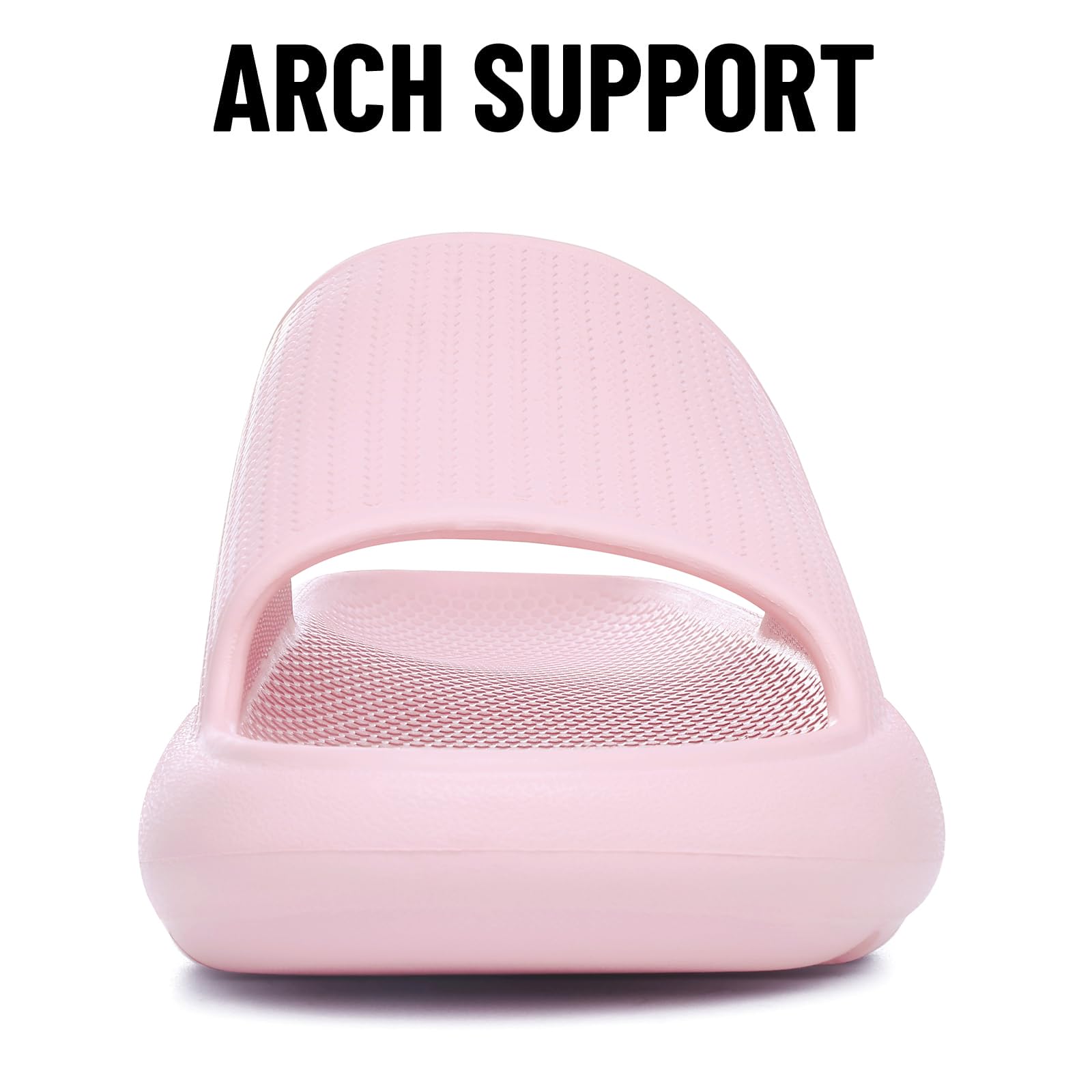 𝗥𝗲𝗰𝗼𝘃𝗲𝗿𝘆 𝗦𝗹𝗶𝗱𝗲 𝗦𝗮𝗻𝗱𝗮𝗹𝘀: 1.6" thick sole and slightly arch support provide supreme shock absorption and unbeatable cushioning, help relieve tired feet and foot pains like Plantar Fasciitis, Swollen Feet.