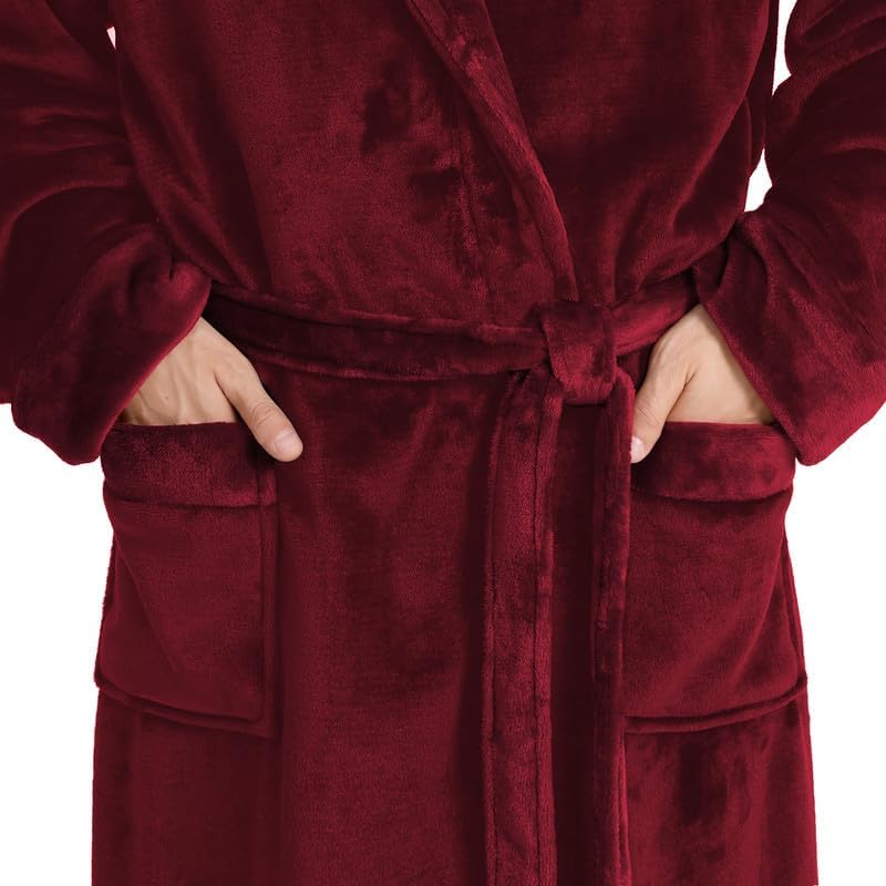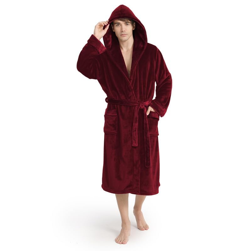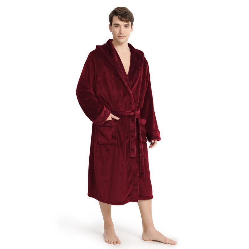 FLEECE HOODED ROBE FOR MEN - The men's robe is made of fleece, which is ultra soft and comfortable. It is the first choice of lounging and relaxation at home.