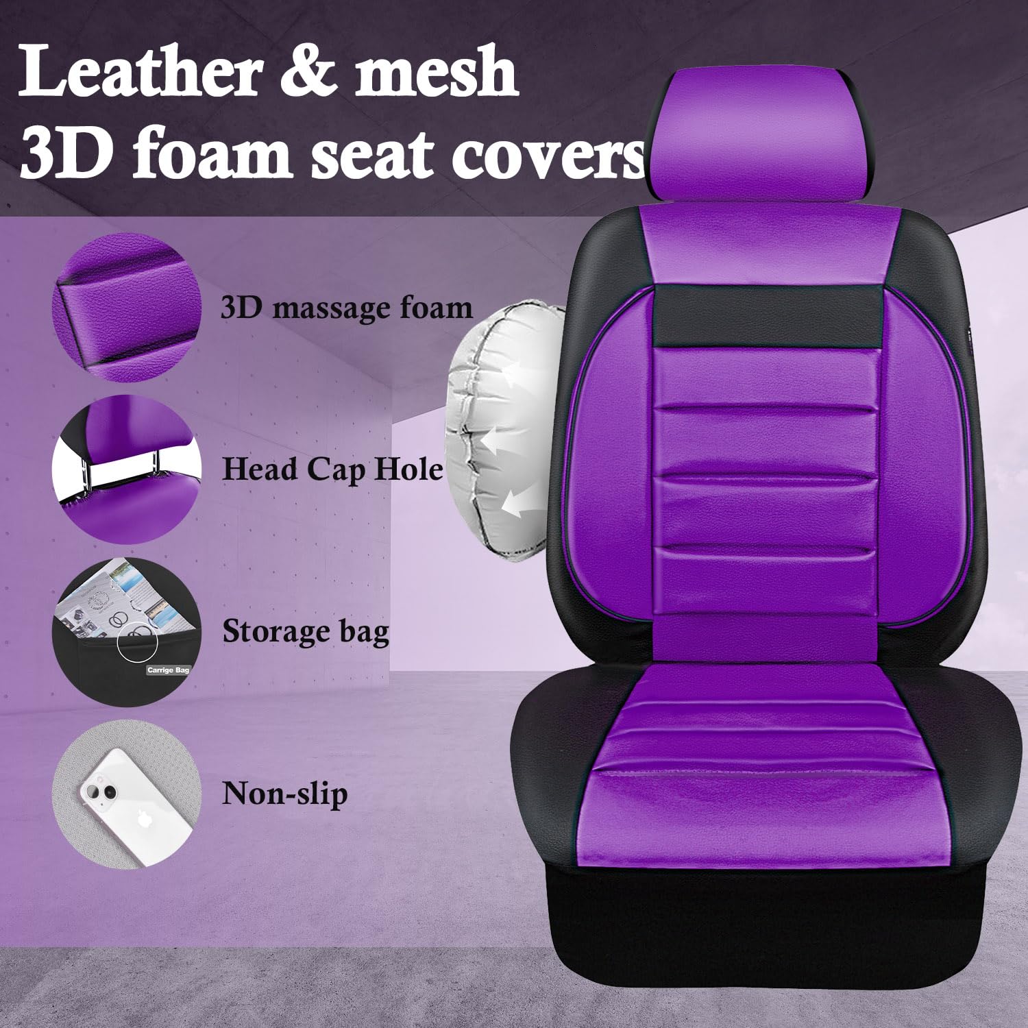 【COLORFUL & SPORT DESIGN】 Designed by high-quality Leather and 3D Foam Back Support , the seat covers are stylish and modern that adding a touch of fashion and luxury to your car interior.