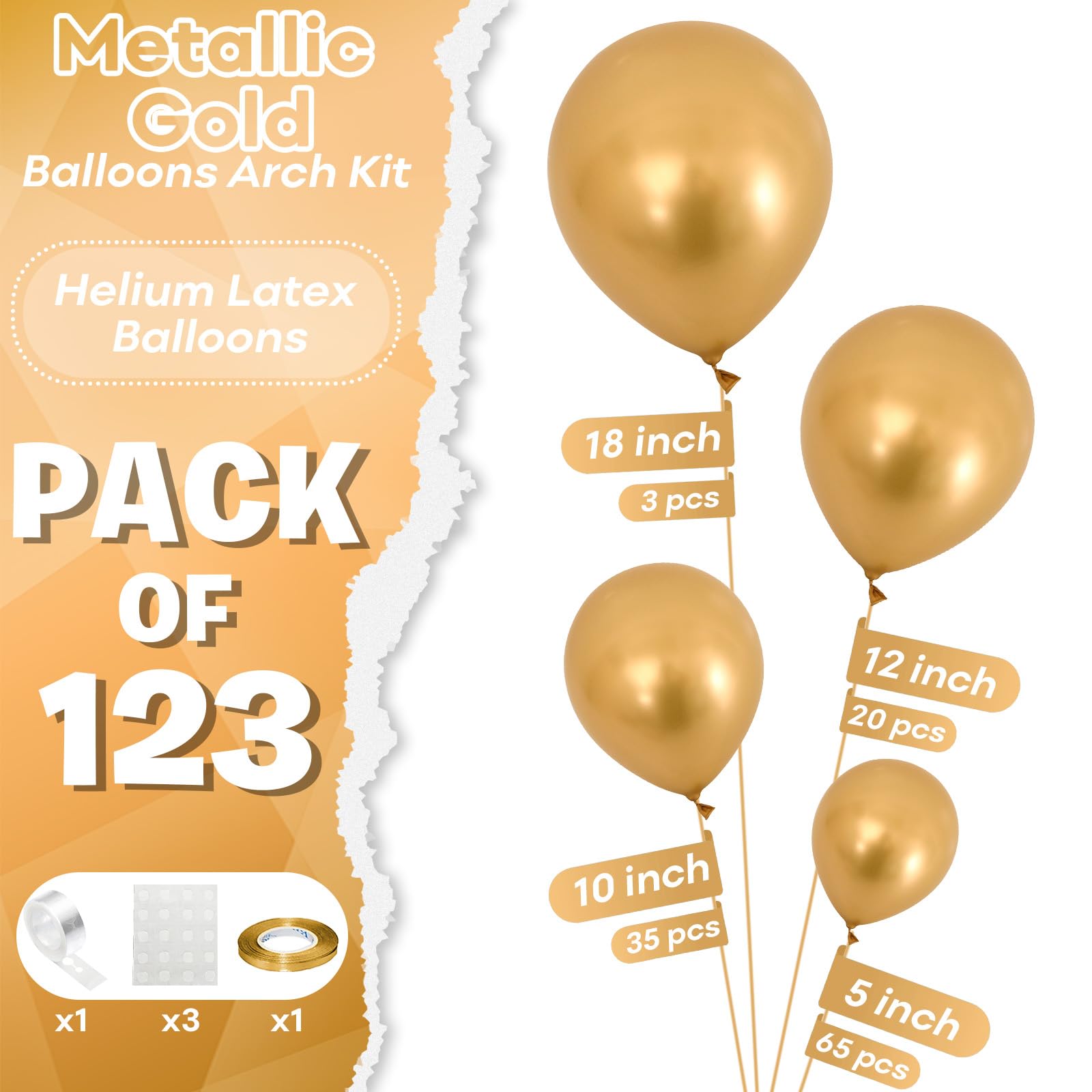 Chrome Gold Balloon Balloon Garland: Includes 123pcs macaron blue balloons, with 3 pieces of 18 inches, 20 pieces of 12 inches, 35 pieces of 10 inches, and 65 pieces of 5 inches. Also included are a 33-foot roll of ribbon, balloon glue, and a balloon chain. These different sizes of balloons can meet your various party decoration needs and create a perfect balloon arch that will make your party or event stand out.