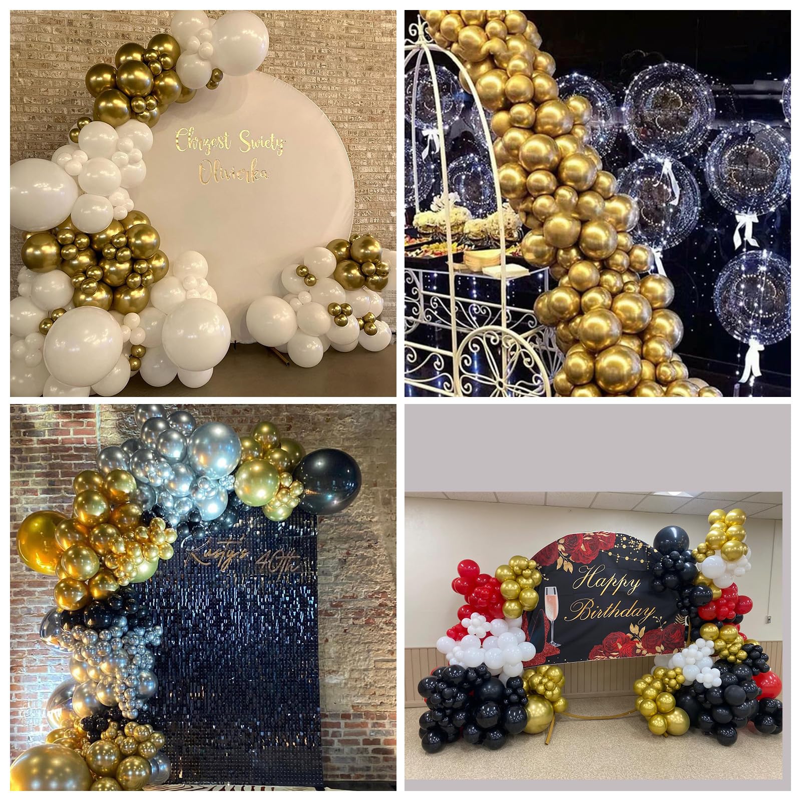 Easy to Assemble: The set comes with ribbons, glue, and a balloon chain, making it easy to use. You can unleash your creativity and combine different colored balloons to create various shapes of balloon garlands. You can even use different sizes of balloons to make a perfect chrome gold balloon garland, making your party unforgettable.