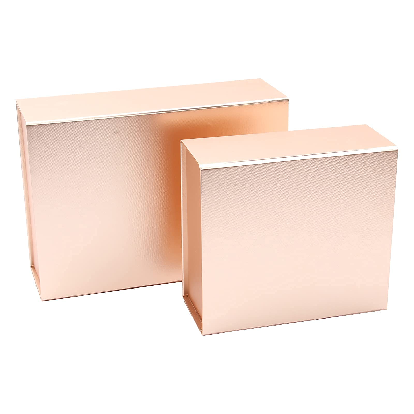 The gift boxes are shipped flat assembled boxes outside measure: 11*7.8*3.5 inches, inside measure: 10*7.6*3 inches.Heavy duty book board construction with matte paper over wrap inside and outside.