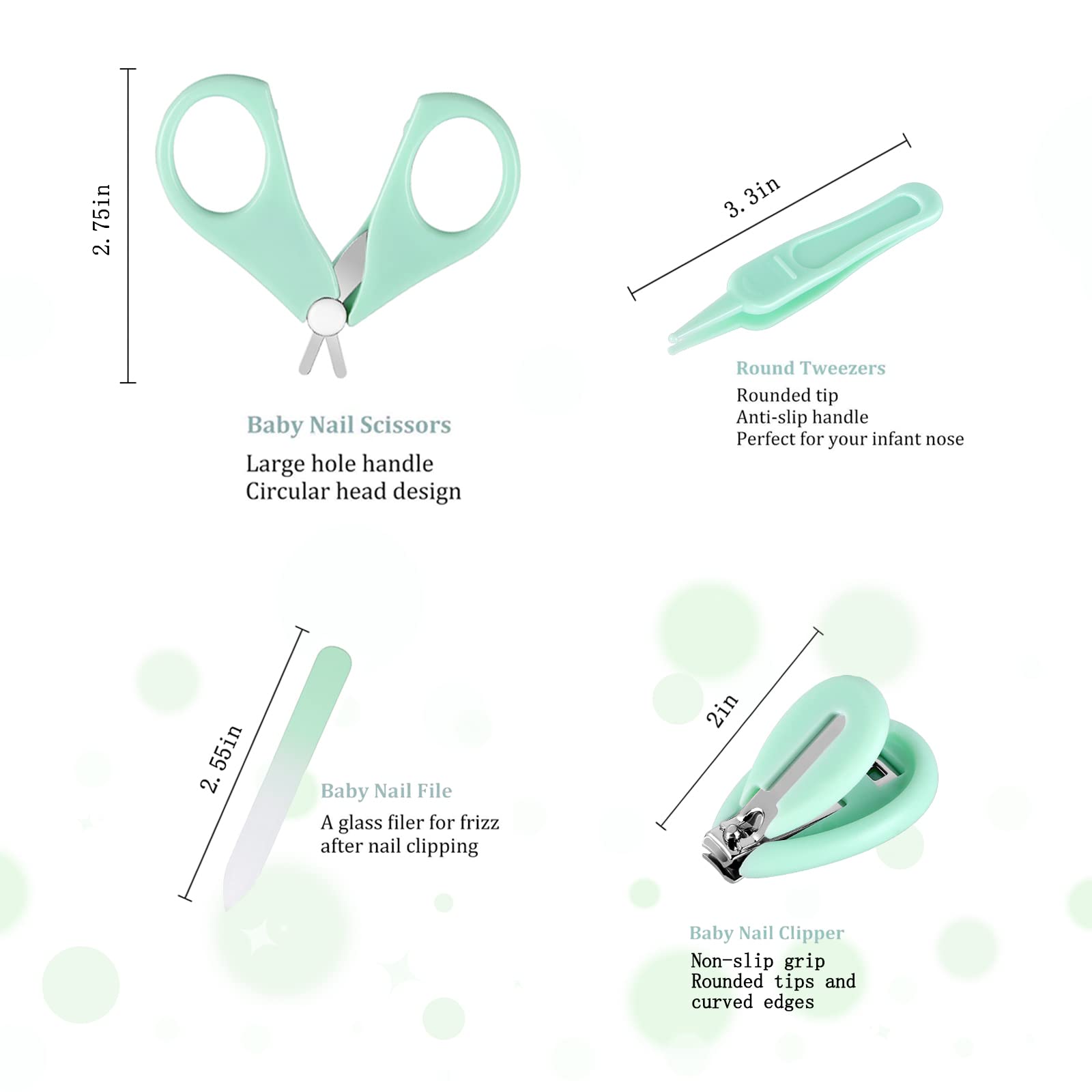 Baby Nail Care 1+1 Set: Compared with the previous ordinary nail grinder set for a preferential combination. Let mom give her baby more care options. The four care tools are manufactured according to the highest hygiene standards. The blades are made of high-quality precision stainless steel and will not rust. The handles are made of premium ABS, non-slip, and long lasting.