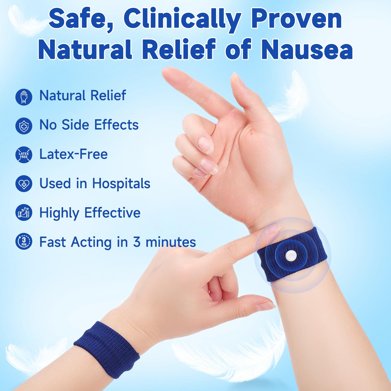 š¬ćFast and Effectivećļ¼This Motion sickness bands can work within 3 minutes . It is simple and effective and can be worn whenever you feel nauseous. They're a natural, reusable and non-drowsy remedy with no drugs or side effects.