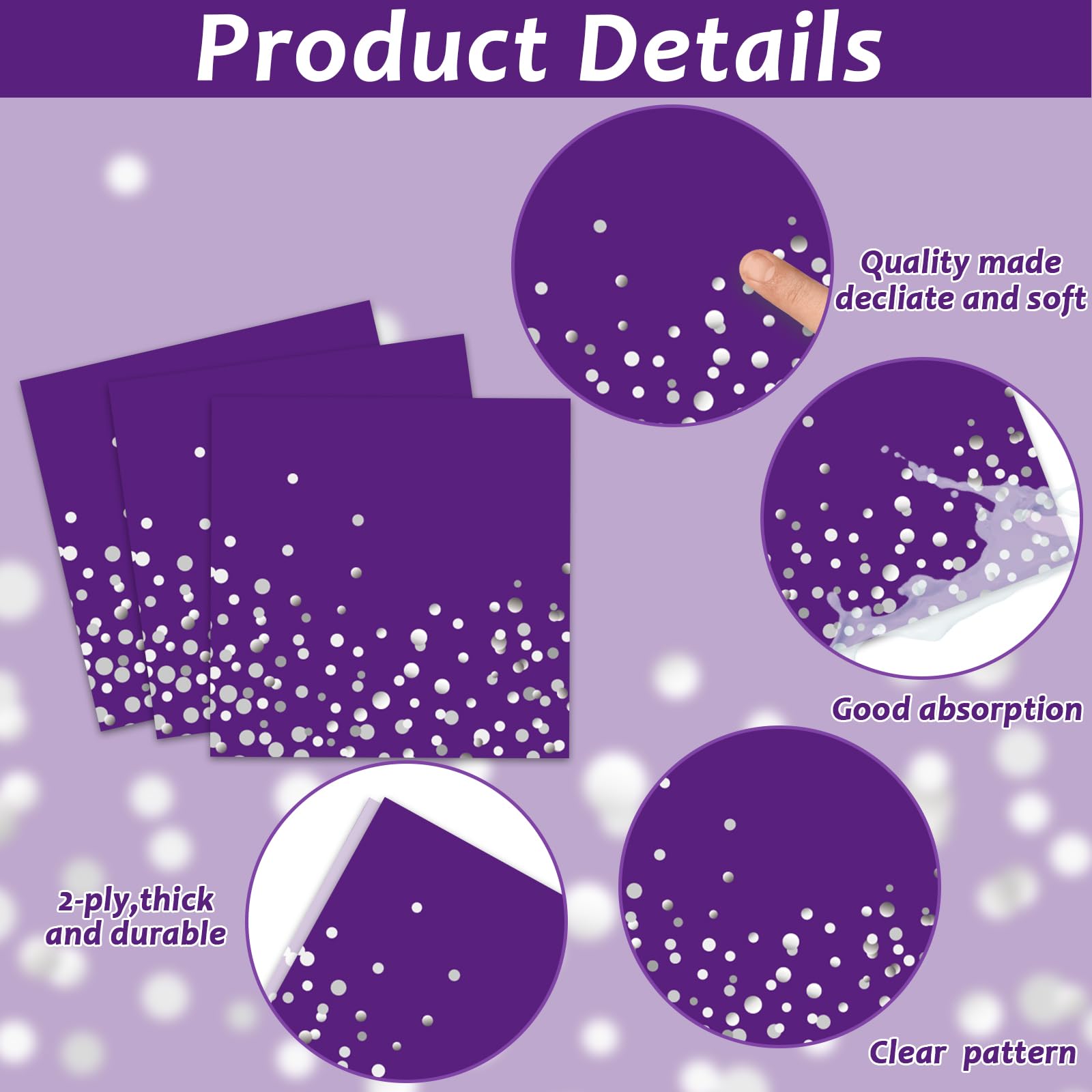 【Confetti Sprinkles Birthday Party Design】This happy birthday theme party tableware set is all designed in purple background and silver dot. Decorating your birthday party with these tableware kit can make your party full of the festival atmosphere.