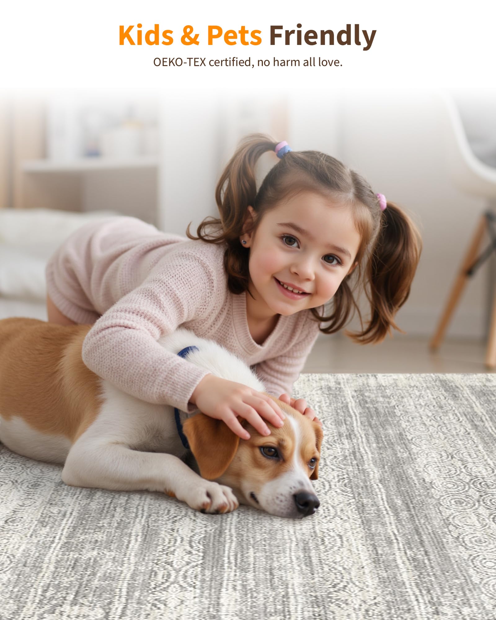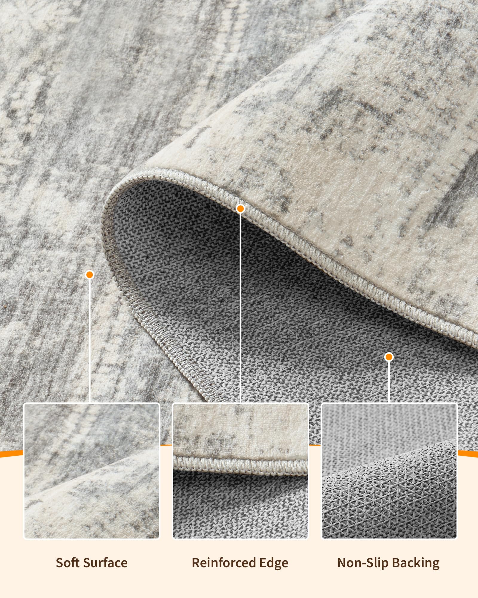 SECURE GRIP BACKING: Our rugs feature a skid-resistant backing with high-density natural rubber dots, designed to enhance stability on hard surfaces. Tested to reduce accidental slips, it eliminates the need for separate pads while providing reliable everyday use in active households.
