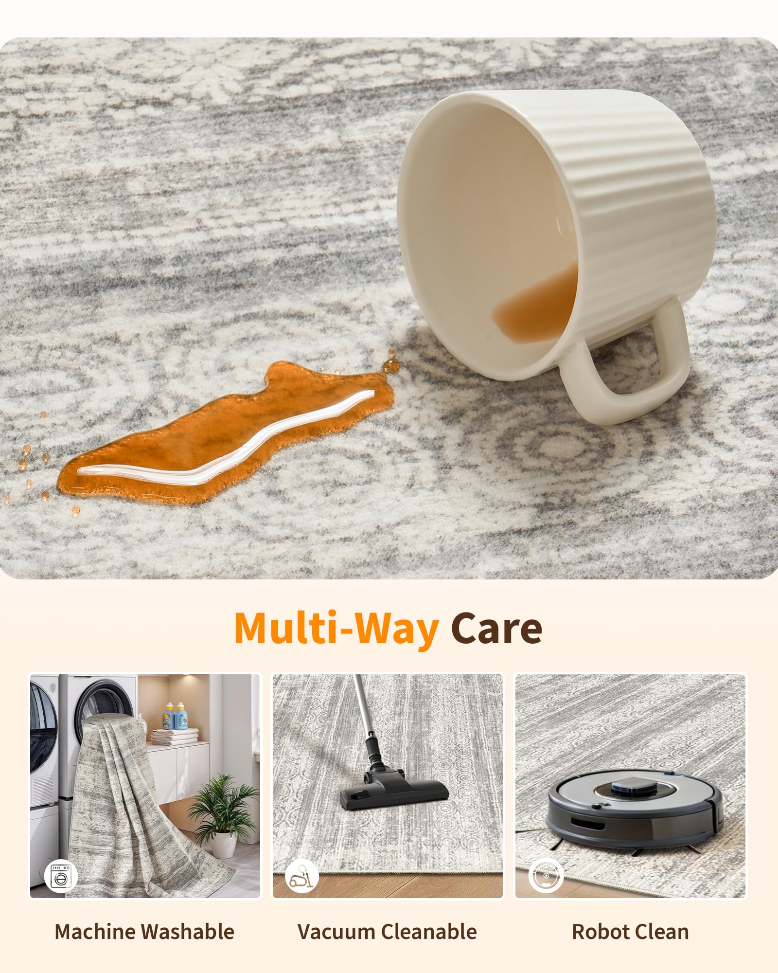 VERSATILE & HIGH-TRAFFIC READY: Low-pile, machine-washable design with natural rubber backing. Ideal for busy spaces: living room, bedroom, kitchen, hallway, or home office. Withstands daily activity while staying securely in place.