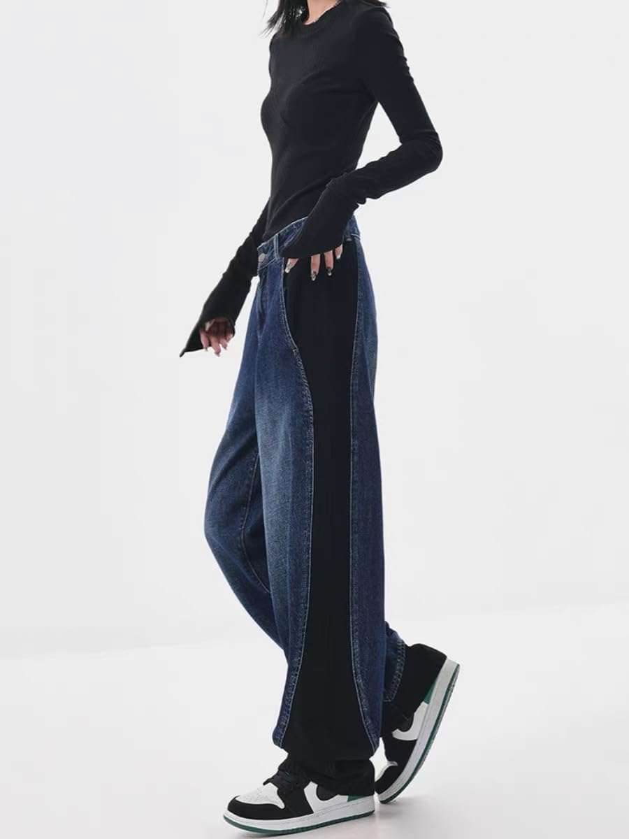 Casual straight leg jeans the loose leg design is suitable for a variety of leg types, for a little calf thick, standard legs, O-leg, X-leg, XO-leg girls can also be easily managed