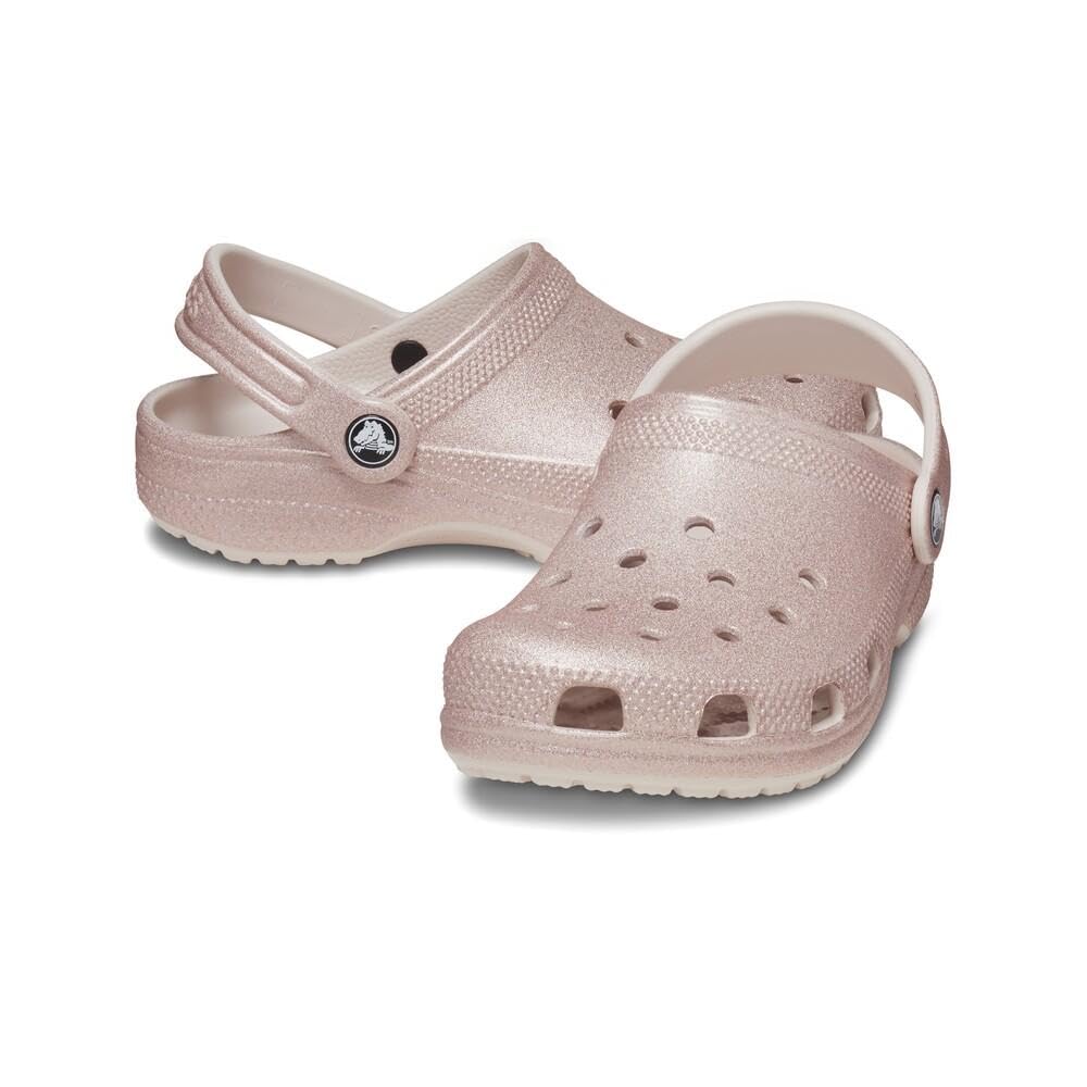 The Croc Kids Classic Glitter Clog looks chic and features an allover glitter detail. It offers comfort and the perfect look for your little one to have fun at parties.
