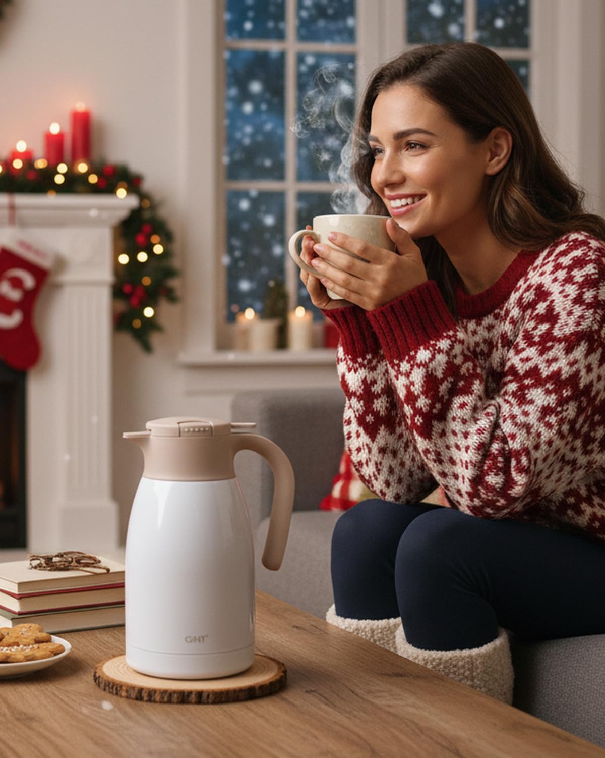 PINCH RELEASE STOPPER:The lid of the thermal carafe can be opened easily with two fingers.When closed, place the cap on the top of the bottle and press it down. The operation of adding water is simple and convenient.
