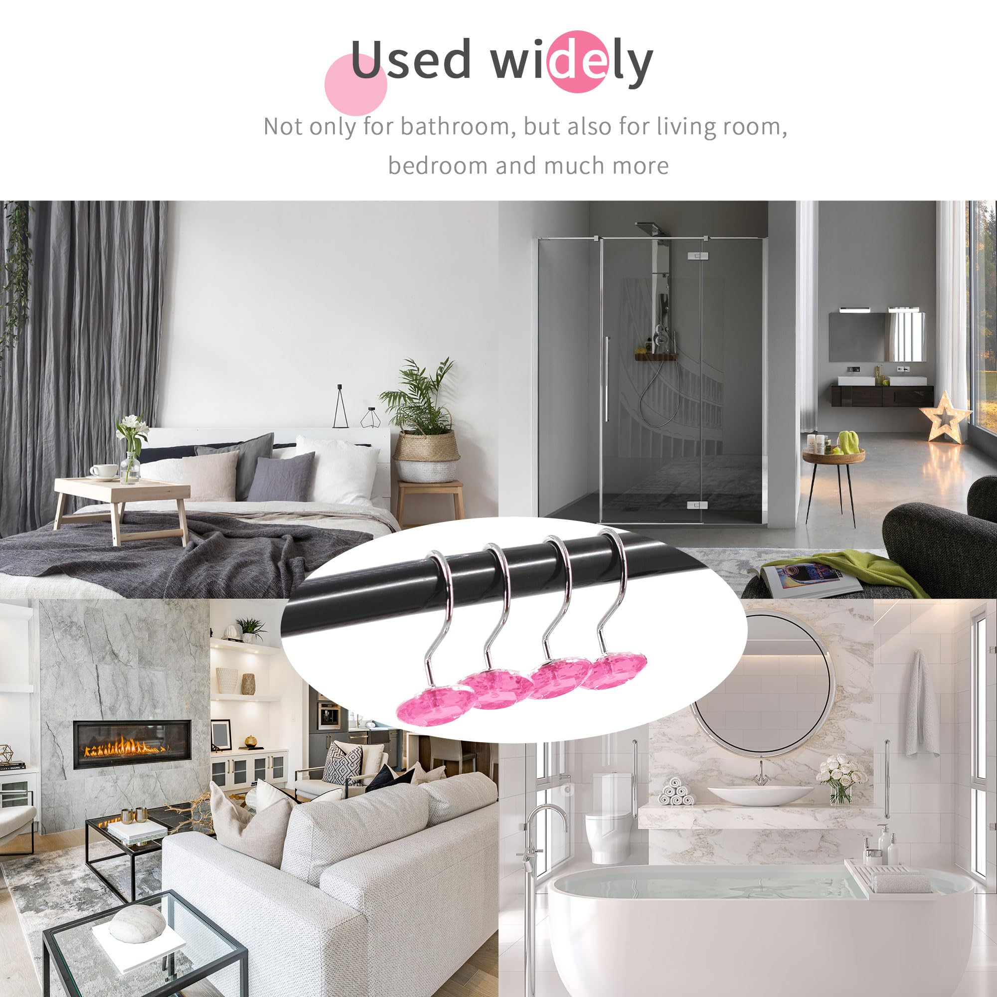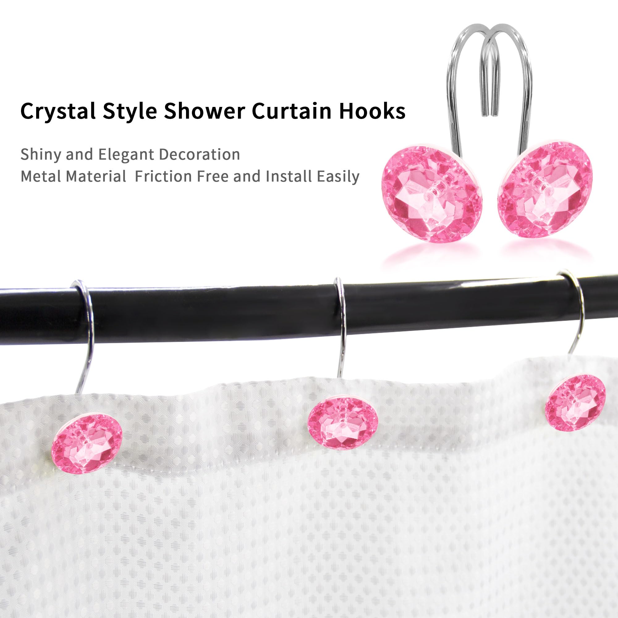 STYLISH AND FUNCTIONAL - Elevate the look of your shower curtain with these hooks featuring a sleek and modern design. The addition of rhinestone decorative accents adds a touch of elegance that complements any bathroom decor.
