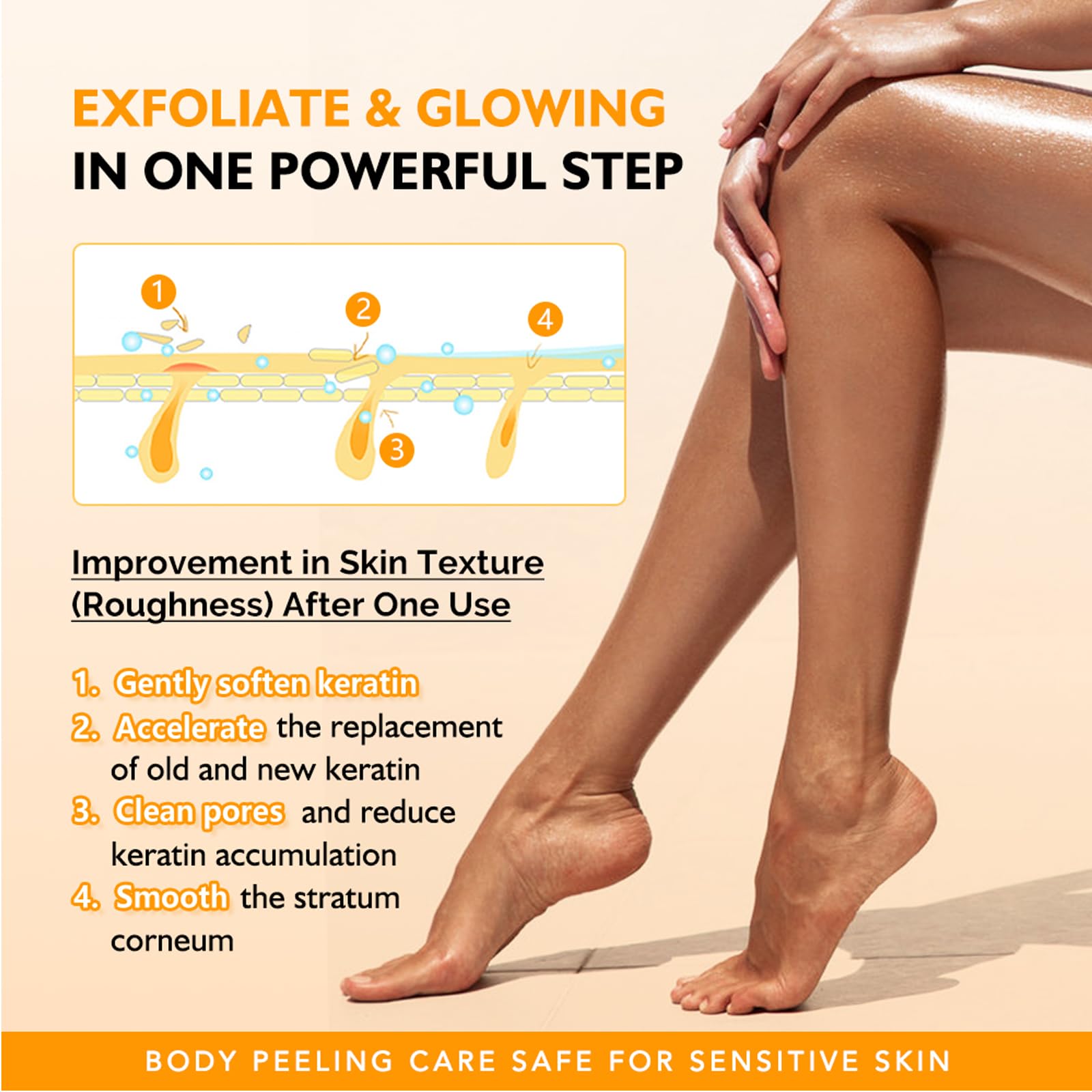 【Dual-Action Body Scrub & Serum】Experience the unique dual benefit of a gentle body scrub and a nourishing serum in one easy step; The fine exfoliating particles buff away roughness while the active ingredients hydrate and renew your skin's texture, leaving it incredibly soft and smooth