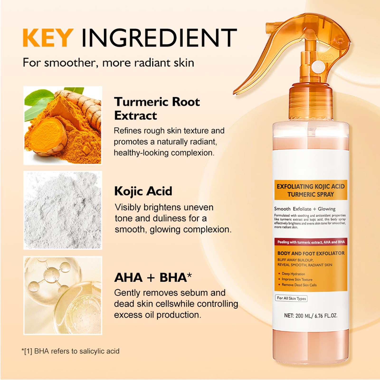 Unlock Your Skin's Radiant Potential. This advanced peel shot turmeric spray is your daily dose of transformative skincare, delivering a powerful yet gentle peel shot to refine texture and a potent retinol shot to target fine lines and boost collagen. The unique formula works like an invisible body scrub, sweeping away dead skin cells to reveal a smoother, more even-toned complexion. Experience the ultimate fusion of renewal and rejuvenation. Lightweight and fast-absorbing, it's perfect for your morning and evening routine. Nourish your skin with high-quality ingredients and see visible results. Includes: 1 x Bottle (200ml).