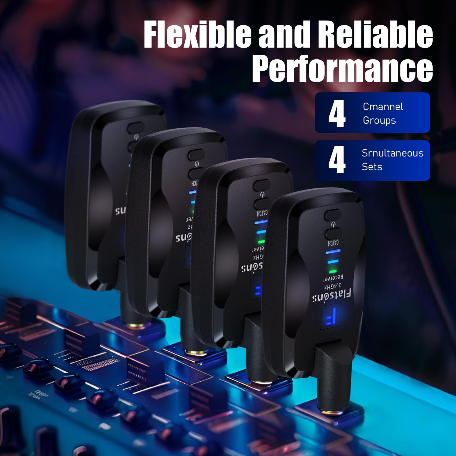 Support Multiple Devices Without Cross-Talk: In environments with multiple musicians using wireless gear, the 4 channel groups prevent signal conflicts and ensure clear transmission. It supports up to 4 devices simultaneously without cross-talk. One transmitter can send signals to 4 receivers, connecting instruments to multiple amps or devices (Note: The units must be of the same model)