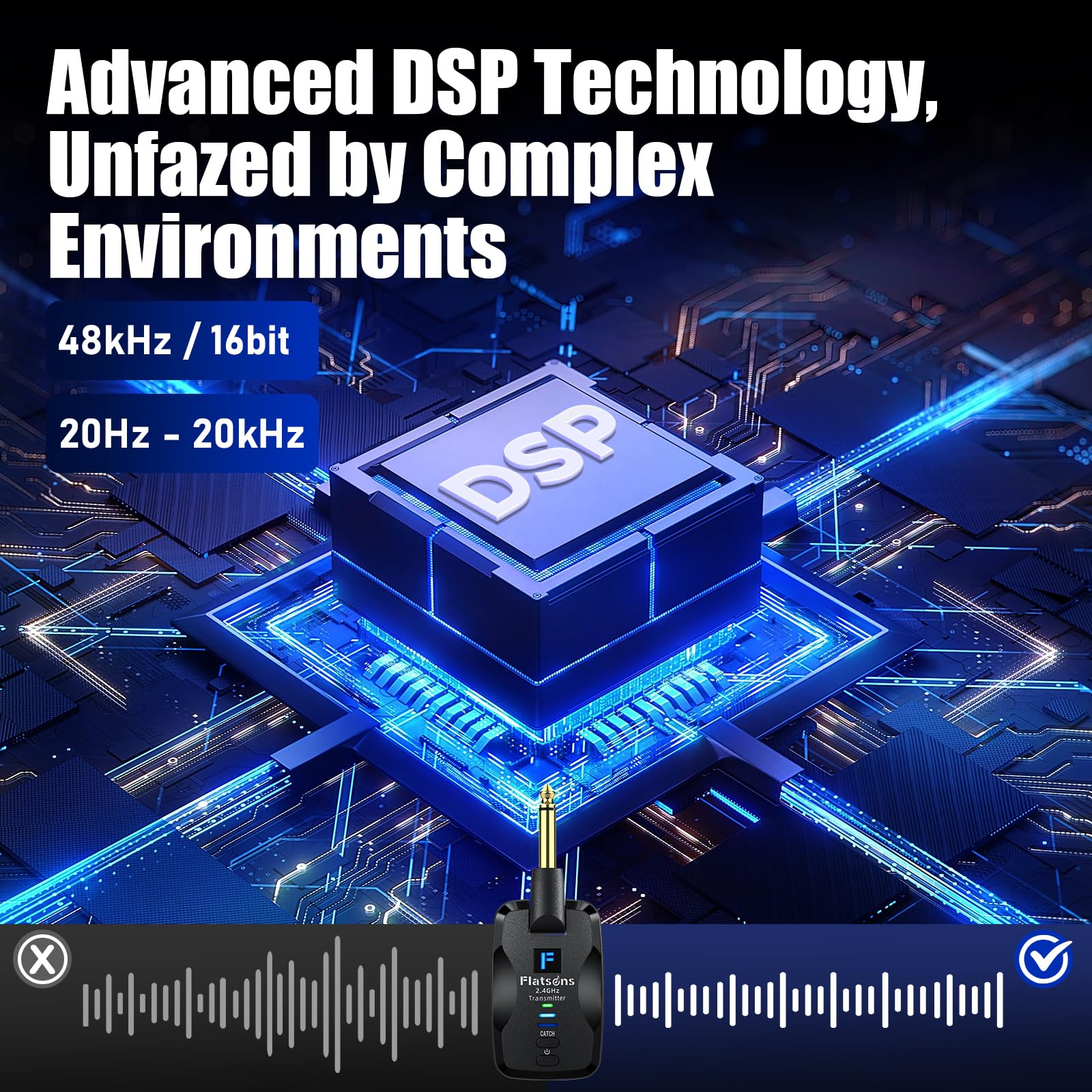 Dynamic Interference Blocking For Clear Audio: Featuring advanced intelligent frequency modulation to block interference, it dynamically adjusts to crowded signal environments. Even in complex venues, you’ll get a stable, clear connection with smooth transmission up to 98ft. Note: This guitar wireless system has approximately 5ms of latency, offering ultra-low delay for virtually instant audio transmission