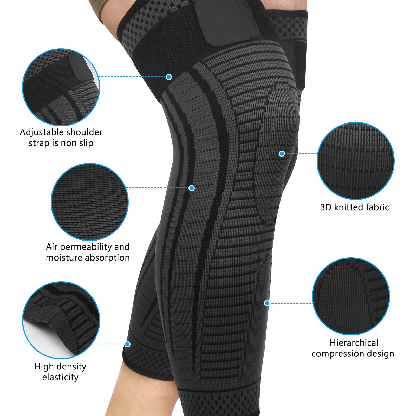Non Slip Design: Our knee sleeves full leg have a shoulder strap at the top that can freely adjust the pressure, which can effectively prevent the knee brace from slipping and maintaining the correct position you want while providing dual compression.