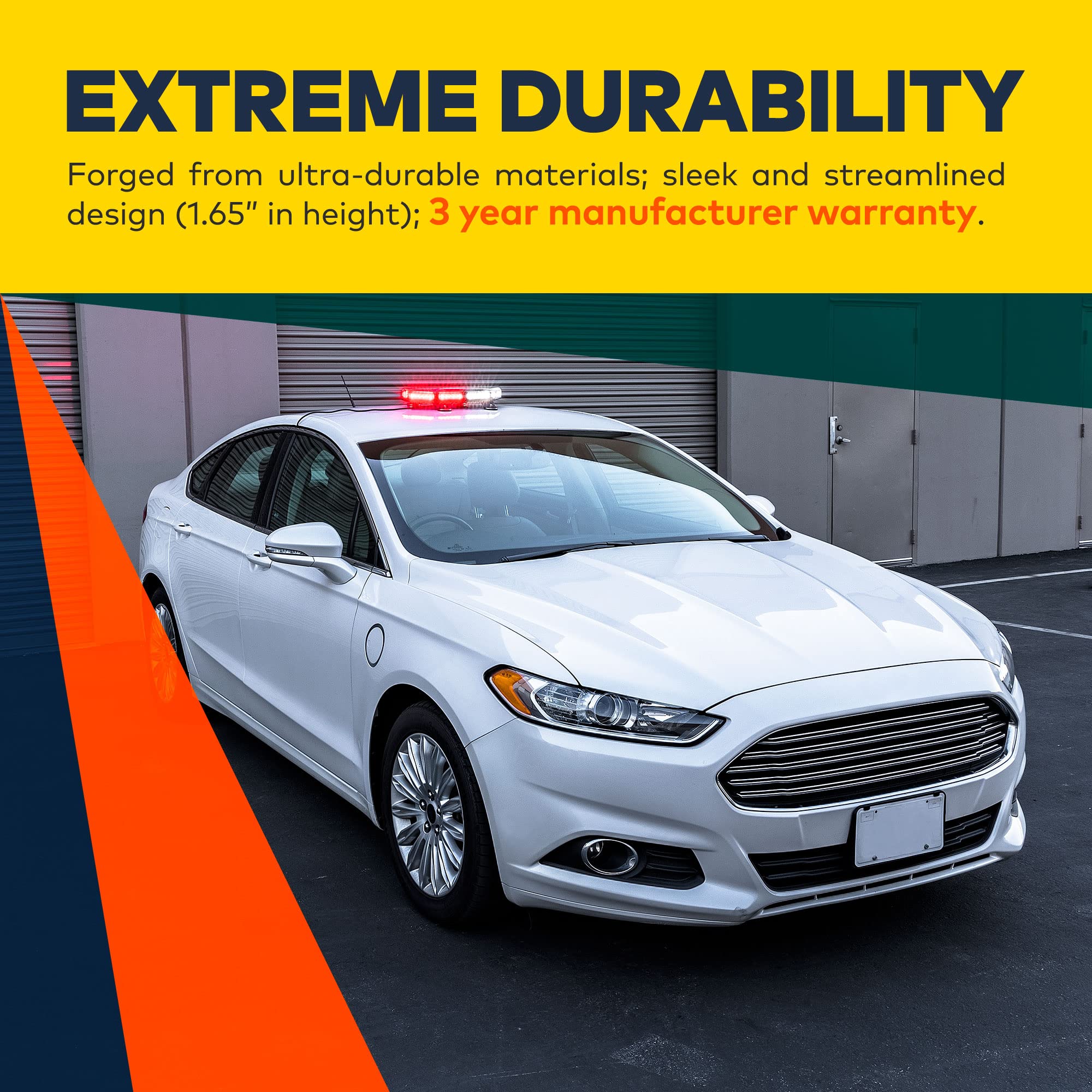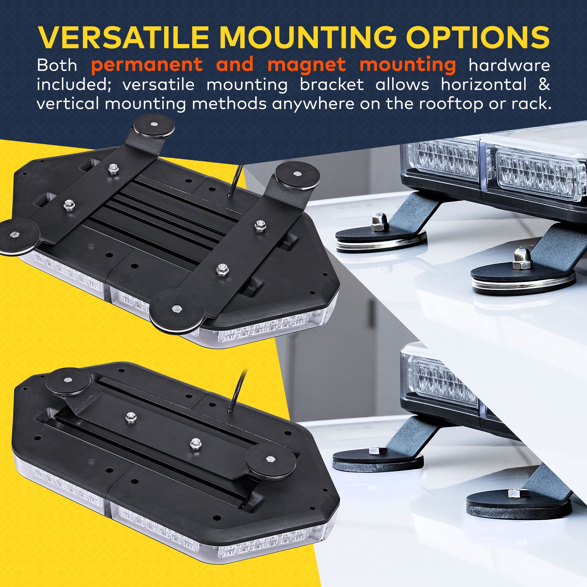 VERSATILE MOUNTING OPTIONS - Both permanent and magnet mounting hardware included; versatile mounting bracket allows horizontal & vertical mounting methods anywhere on the rooftop or rack; perfect light bar for full-size sedans like Crown Victorias, Chargers, and more.