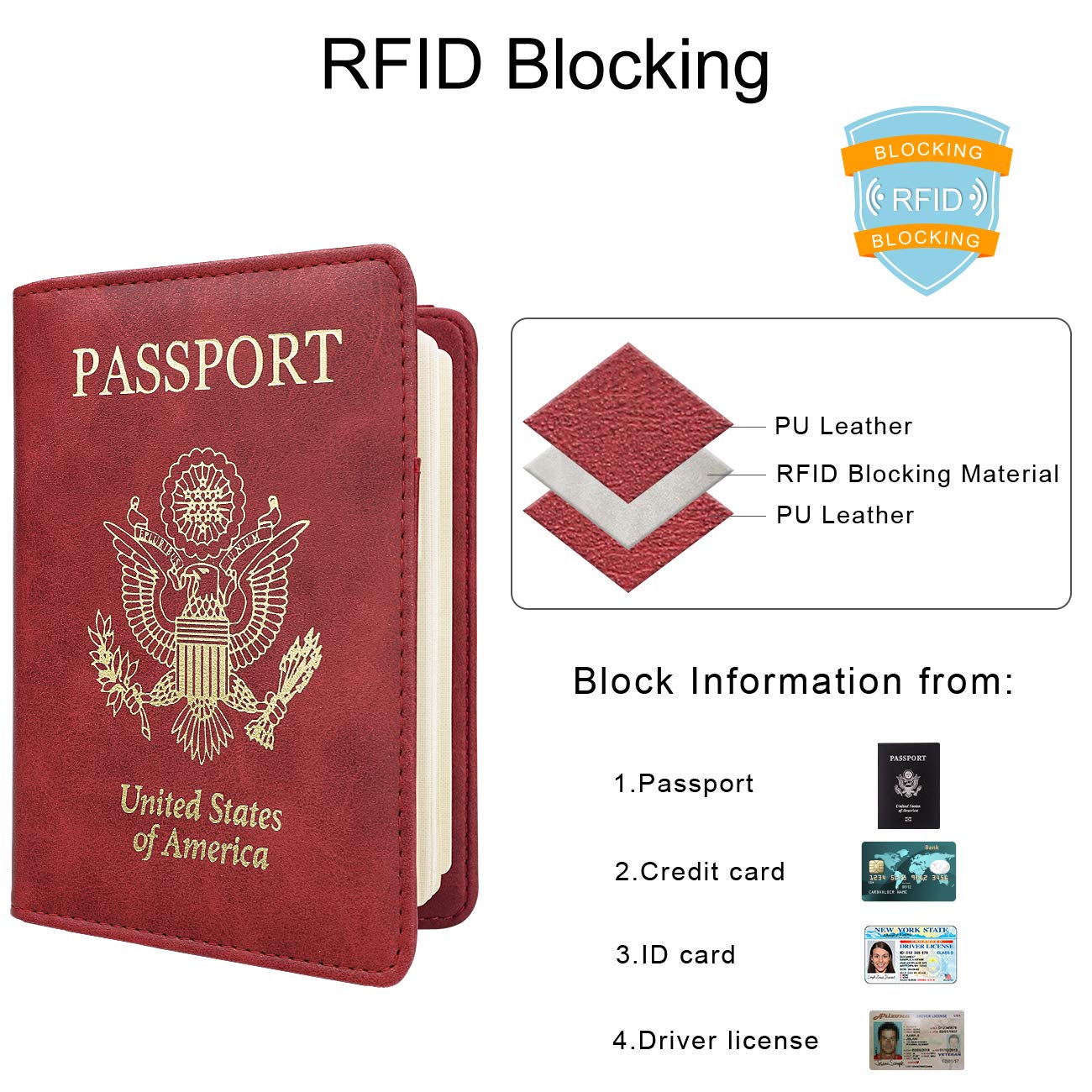 Security Passport Book Protector: With RFID blocking shield material inside, this RFID Blocking passport wallet helps prevent personal account information disclosure. Comes with an elastic strap which can secure items inside, rfid wallet will not open in your bag or luggage